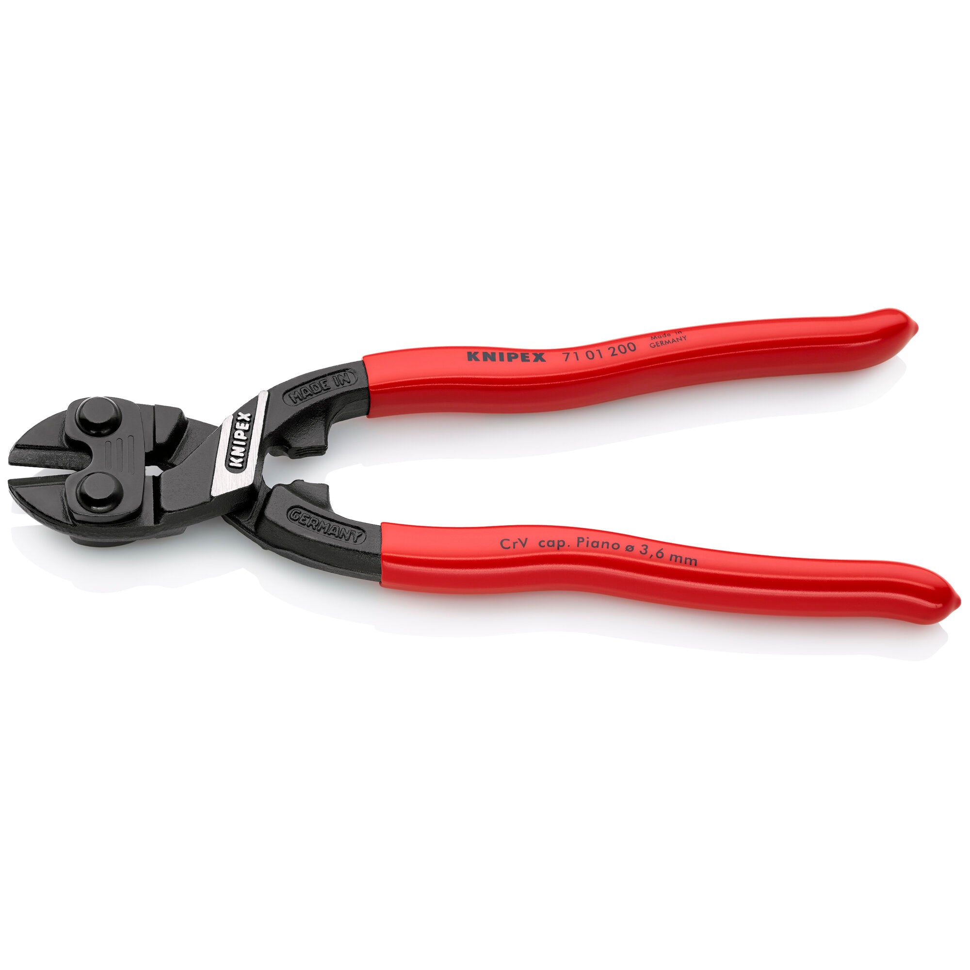 Exceptional cutting performance: 60% less effort compared to conventional high leverage diagonal cutters. Induction hardened cutting edges (approx. 64 HRC) for cutting soft, hard and piano wire. Cuts materials like bolts, nails, rivets, etc. up to 1/4" (6.0 mm) diameter. Exceptional cutting performance with minimum effort because of lever action design. Micro-structured cutting edges allow easy cutting of large cross-sections. Gripping surface below the joint for gripping and pulling wires with a diameter from 3/64". Straight blade. Chrome vanadium heavy-duty steel; forged, multi stage oil-hardened.