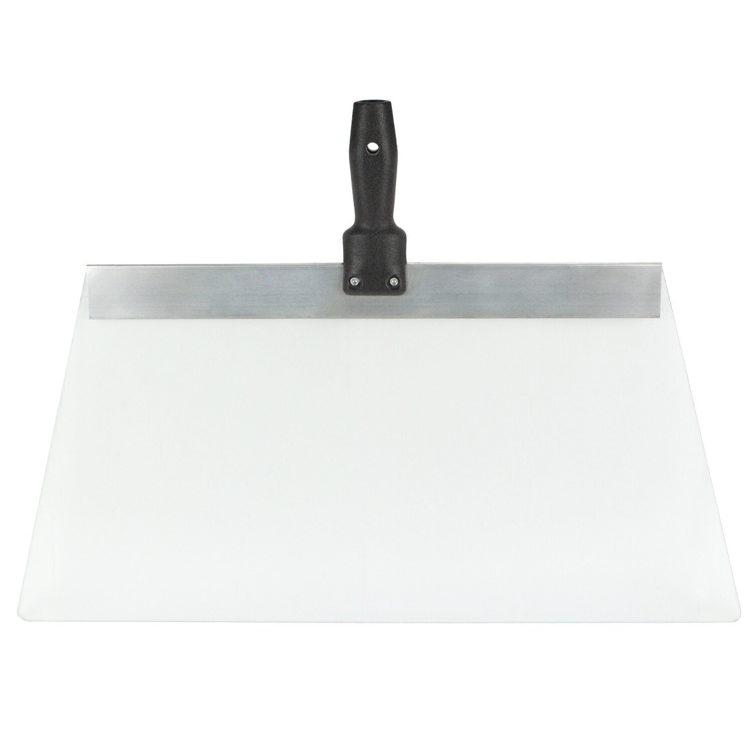 Create a subtle knockdown, mottled texture on ceilings and drywall with this blade. The 24" long Lexan® blade is strong for extended use. The translucent plastic blade is 12" wide to allow just enough give to allow for ease in movements. The blade tapers to the base making movements easier, especially when working on corners. The blade is secured to an aluminum base to which the handle is secured. The handle is secured to the mounting with no wobble. The wider handle allows for a firm grip. A textured plastic handle allows for a comfortable, yet firm grip. For extended reach such as ceilings a broom thread handle can be added to the end of the handle. A hang hole for easy storage completes the tool.