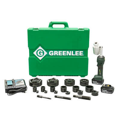 FeaturesTime Saver - maximum cycle time of 8 seconds . Patent-Pending Auto-Retract Technology - Pressure-sensing technology accurately detects punch completion and automatically retracts the ram, for longer tool life. 360° Rotating Head - Rugged, patent-pending swivel design to punch at any angle. Compact, Ergonomic Design - Ergonomic tapered grip for easy one-handed operation. Slug-Buster® punch profile splits slugs for easy slug removal. Knurled edge on punches for better grip. New die design optimized for widest range of materials and drivers. Laser markings for quick part identification. Alignment markings for improved accuracy. Easy threading - draw studs with "dog point" tip helps eliminate cross-threading. Hex key access for easy removal from tool. Gator Eye® Compatible - with i-Press software, monitor tool performance including peak forces and number of cycles. Works with all Greenlee knockouts. Same draw studs used with Intelli-PUNCH, LS50L2 and 746A ram. Punches, dies, draw studs and case made in the USA. Driver made in Germany. Batteries made in Japan. Charger made in China.