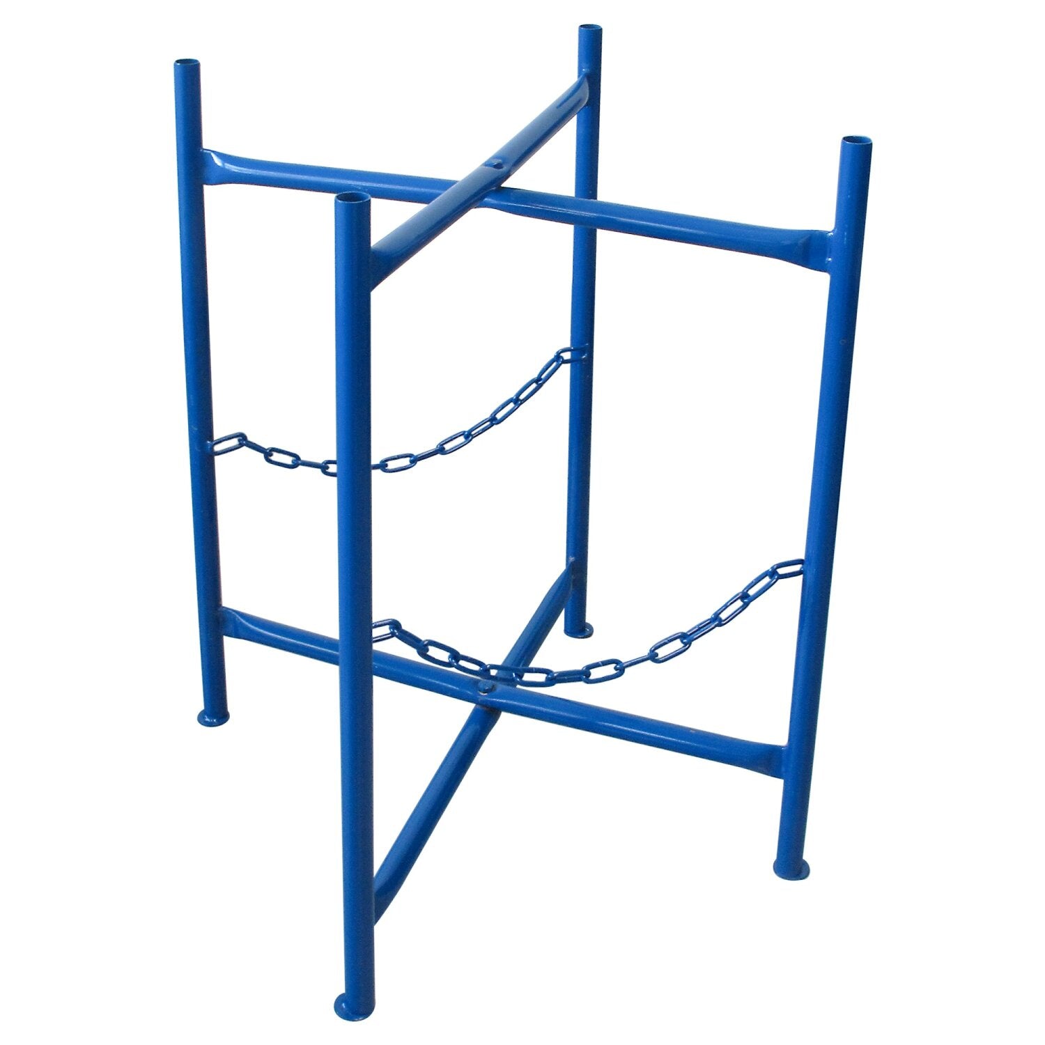 This 30" tall mortar stand provides table size access to mortar and other materials. Place mortar boards or pans (sold separately) on the top of the stand to create the perfect work environment for masonry or other projects. The stand can be turned on its side for more variance especially when working on low part of a wall. A worker can use it on the ground or up on scaffolding. The tubular construction provides strength while keeping the weight low. Double chains between legs provide strength while eliminating over-extension of the legs. The bright blue color provides contrast and is easy to spot against bricks and blocks. The stand is painted to provide protection against corrosion and the environment. Folds flat for easy transport and storage.