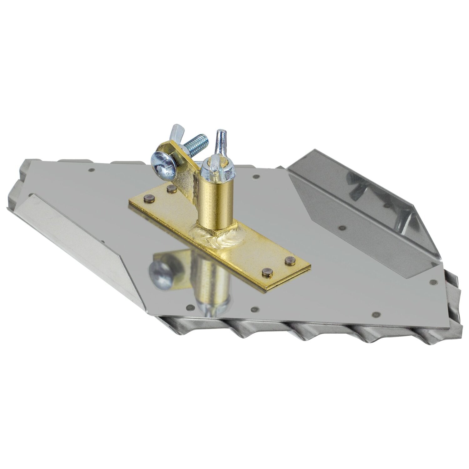 Ideal for cutting grooves in sidewalk safety ramps where water drainage and traction are critical. The strong stainless steel blade creates a clean smooth cut with easy clean-up. The left side ramp groover features a 1/4" x 1/4" groover bit is formed by a single piece of stainless steel for a completely smooth groove. The grooves are spaced 3/4" apart on center to create traction on the surface. A top plate secures the tool and provides additional strength for moving across safety ramps. Use as a set of 3 (Left, Straight, and Right) for best results, sold individually. Use Kraft Tool #CC084 and #CC085 for complete coverage. The Swivel Bracket is designed to adjust 360° degrees for the versatility to let you work from any angle. Lockdown the angle of the handle with a twist of the wingnut on top. Use with Narrow Clevis Handles (#CC656), sold separately. Use with a Clevis Handle Adapter (#CC332N or #CC332LN) for use with bull float extension handles, all sold separately. A matching Hand Groover (#CF083) is also available.