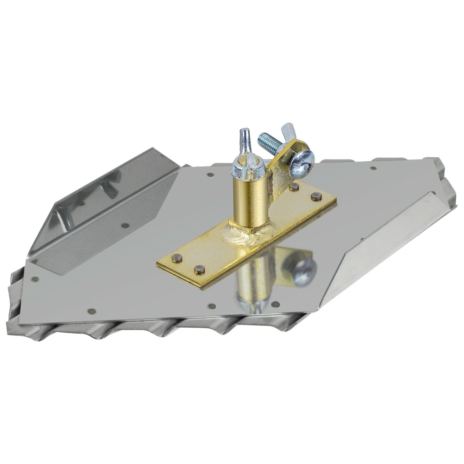 Ideal for cutting grooves in sidewalk safety ramps where water drainage and traction are critical. The strong stainless steel blade creates a clean smooth cut with easy clean-up. The right side ramp groover features a 1/4" x 1/4" groover bit is formed by a single piece of stainless steel for a completely smooth groove. The grooves are spaced 1" apart on center to create traction on the surface. A top plate secures the tool and provides additional strength for moving across safety ramps. Use as a set of 3 (Left, Straight, and Right) for best results, sold individually. Use Kraft Tool #CC086 and #CC087 for complete coverage. The Swivel Bracket is designed to adjust 360° degrees for the versatility to let you work from any angle. Lockdown the angle of the handle with a twist of the wingnut on top. Use with Narrow Clevis Handles (#CC656), sold separately. Use with a Clevis Handle Adapter (#CC332N or #CC332LN) for use with bull float extension handles, all sold separately. A matching Hand Groover (#CF088) is also available.