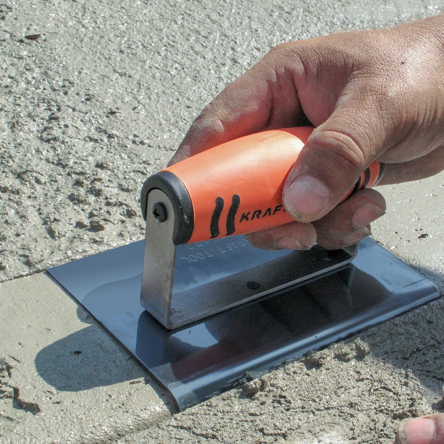 The 6" long blue steel blade moves smoothly along edges of concrete sidewalks and slabs. This edger creates a 3/4" radius, with a lip, on the edge of concrete slabs to prevents the edges from chipping with wear. The 6" square tool provides the perfect amount of coverage on sidewalks and small projects. The tempered crucible spring steel provides the proper amount of "give" for the perfect feel when working on slabs. Three rivets secure the steel mounting to the blade. The rivets are ground for a smooth perfect finish. A ProForm® soft grip handle completes the tool. The enhanced texture on the handle reduces fatigue and provides a great grip even when wet. The signature orange and black handle is easy to find on a jobsite.