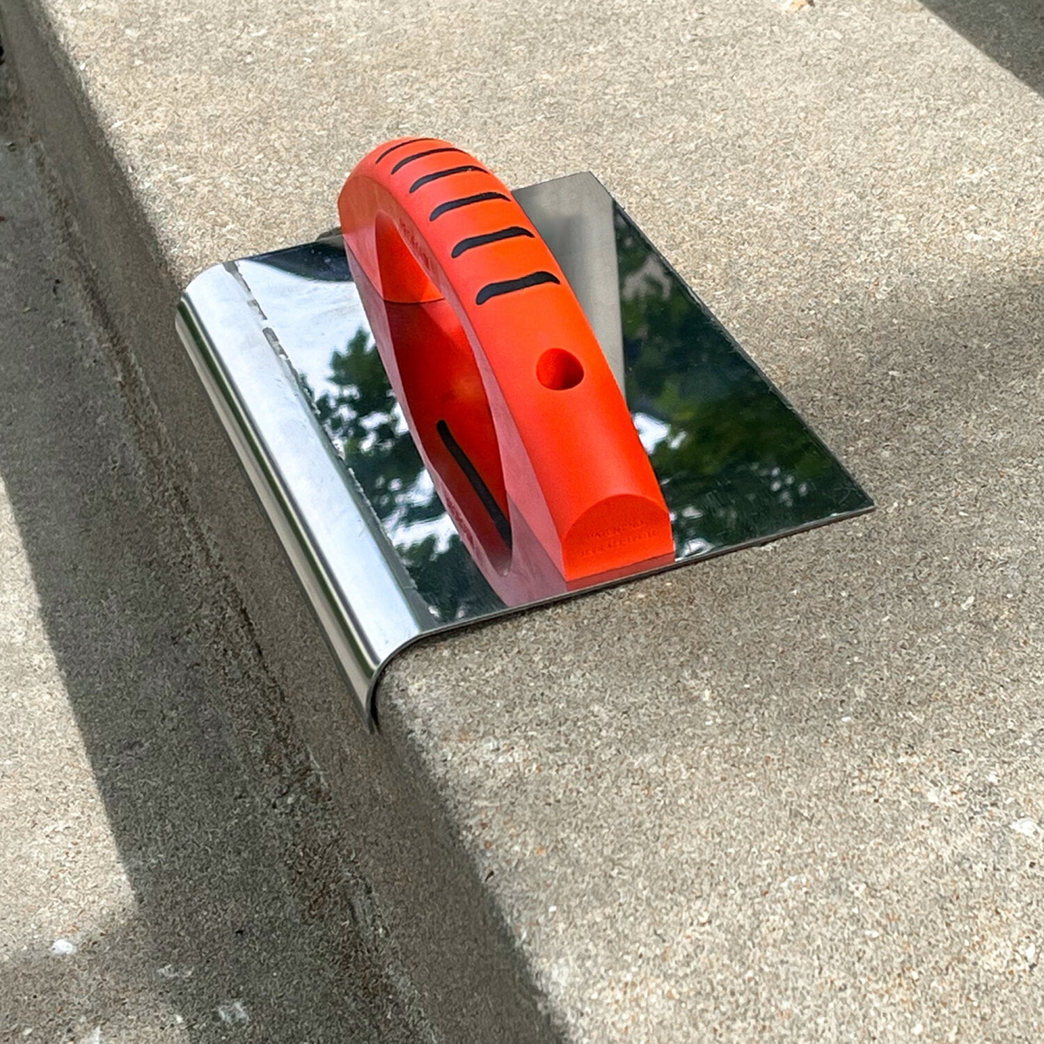 The large 10" long stainless steel blade moves smoothly along edges of cement sidewalks and slabs. This edger creates a 3/4" radius with lip on the edge of concrete slabs to prevent that edge from chipping with wear. The lip extends down for even coverage along ends and forms. The 6" wide tool provides the perfect amount of coverage on concrete highways, sidewalks, and other large projects. The strong #16 gauge stainless steel blade is long lasting and easy to clean-up. Designed to fit the exact contour of the edge for a professional finish. The heavy gauge blade is rivet-free for a flawless finish. Uniquely designed with a float handle for greater control on a large edger. The ProForm® soft grip handle is precisely positioned for perfect balance with less fatigue. Kraft Tool's patented ProForm® soft grip handle (US Patent #6,473,939 B1 and US Patent #6,821,468 B2) provides a comfortable grip. The enhanced texture ribbing of the handle reduces fatigue and provides a great grip even when wet. The bright orange handle is easy to spot on a jobsite even after use.