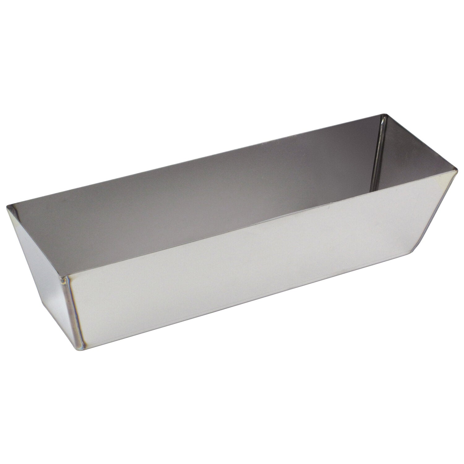 This heavy duty 14" stainless steel mud pan holds drywall mud or other plaster materials. Strong heli-arc welds create a sturdy long-lasting pan that stands up to lots of use. The tight weld prevents oxidation and creates a smooth interior seam to prevent build-up of material. Strong welds provide leakproof seams. Tapered ends and sides allow taping knives up to easily fit for fast and smooth movements on the jobsite. The sides are sheared to quickly and easily clean taping knives. The stainless steel pan resists rust and makes clean up easy. Pan is 3-1/4" deep to provide ample coverage of mud and stucco.