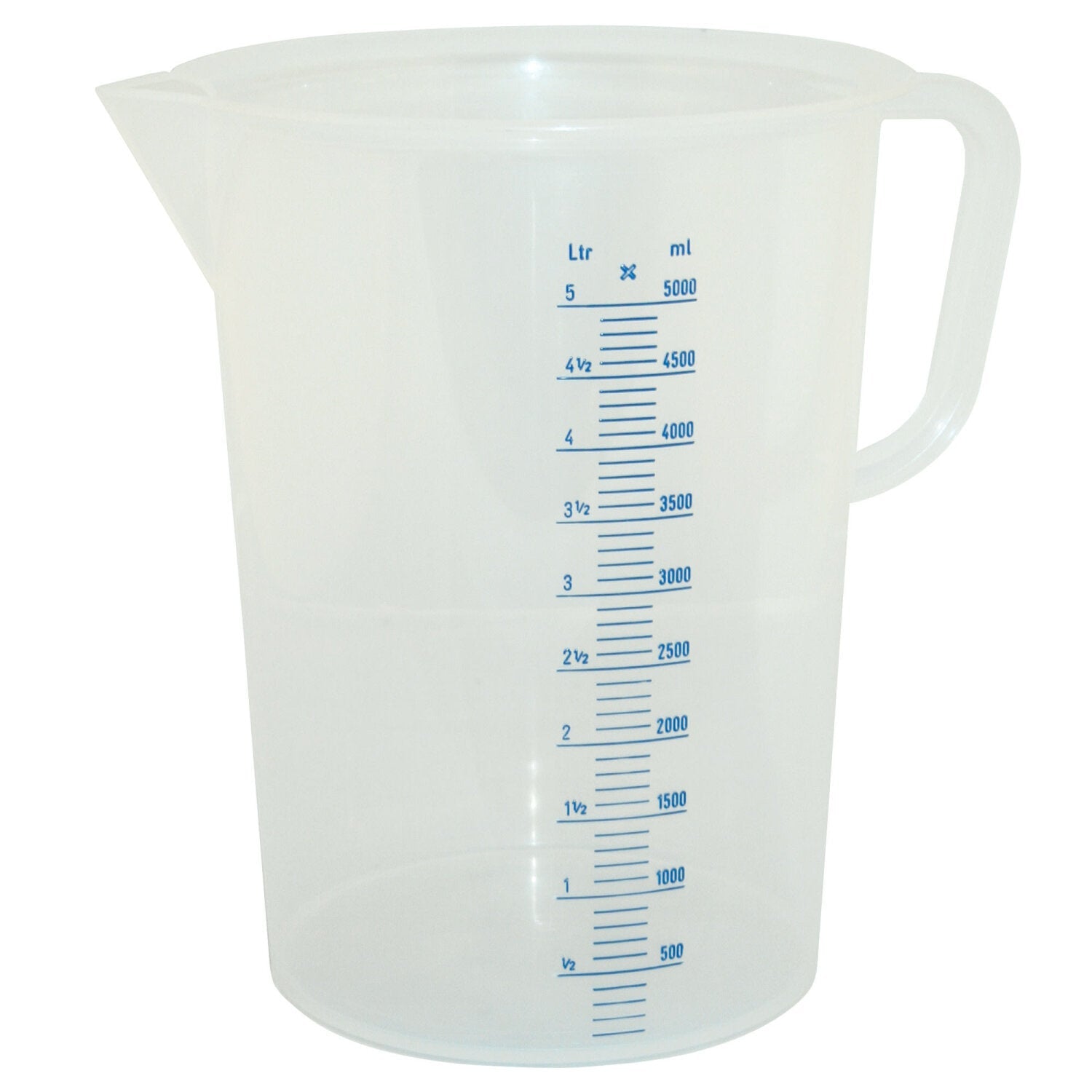 Handy pitcher is ideal for measuring and mixing self-leveling material, drywall mud, grout, thinset adhesive, or other materials or chemicals. The pitcher is made of polypropylene, which is resistant to many chemicals adding to its versatility. The translucent pitcher with liter and quart graduations makes it easy to accurately measure liquid or powdered material. The sides extend up beyond the top of the measurements to reduce spills when moving material. A sturdy handle and spout makes easy movement of materials. The pitcher is designed for nesting of multiple pitchers.