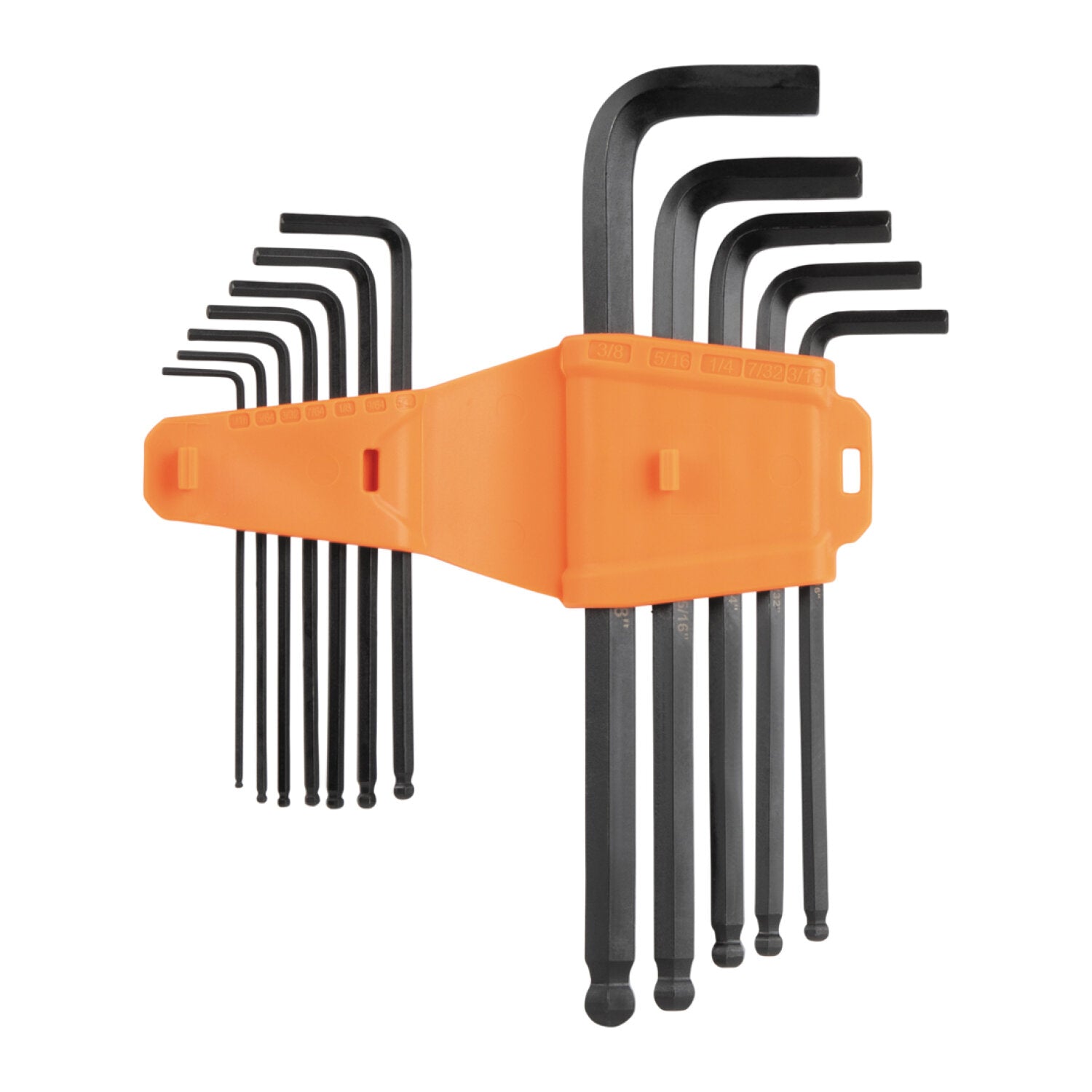 Klein Tools' Long Arm L-Style Hex Key line conveniently consolidates the most used sizes into one compact case. The flexible folding case ensures easy access to keys while providing sleek and adaptable storage options when interlocking SAE and MM cases together. Each key is heat-treated and coated in black phosphate for unparalleled strength and corrosion resistance.