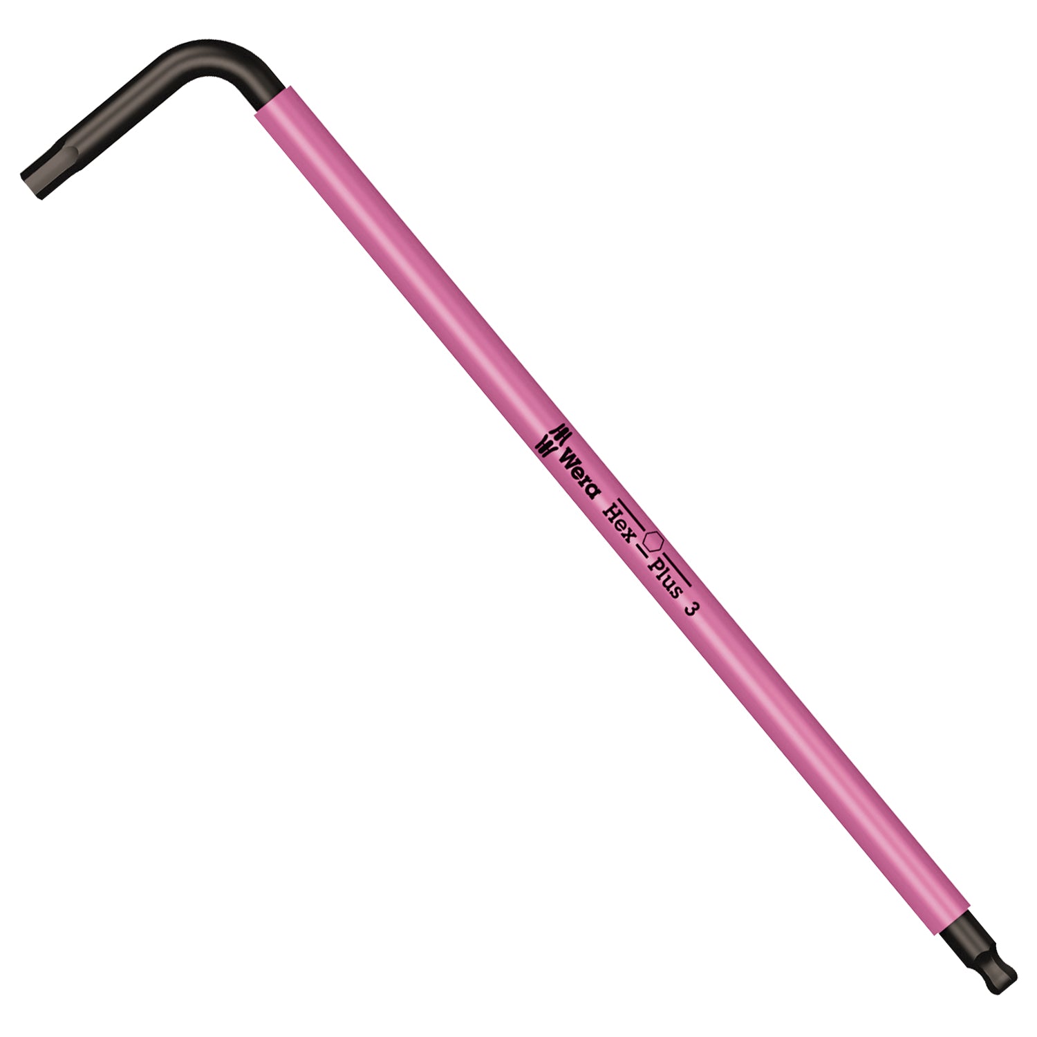 High quality Wera L-keys with colour coded, convenient plastic sleeve. This means that the tool is quickly accessible and the ergonomic and pleasant handle is easy on the hands even at low temperatures. The Hex-Plus profile offers a larger contact surface within the screw head. This reduces the notching effects to a minimum and almost completely eliminates the risk of destroying the screw recess. The ball-end on the long arm allows for reliable working even in difficult installation situations. The holding function holds screws securely on the tool. The BlackLaser surface treatment provides outstanding surface protection, even against corrosion, and a long service life. The tools are quickly to hand thanks to the laser-engraved and thereby wear-resistant size markings on the L-keys.