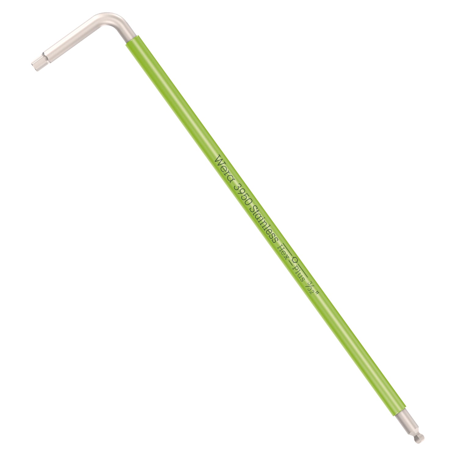 Premium L-key made of stainless steel for imperial hexagonal socket screws by Wera. Stainless steel prevents transmission of extraneous rust. The Hex-Plus profile offers larger contact surfaces in the screw head. The notch effect is reduced to a minimum and the destruction of the screw head is almost eliminated. With hexagonal ball tip at the long arm: The ball-shaped tip profiles enable the tool shaft to be moved and pivoted relative to the screw axis which allows screwdriving "around the corner". Take it easy tool finder with colour coding by size.