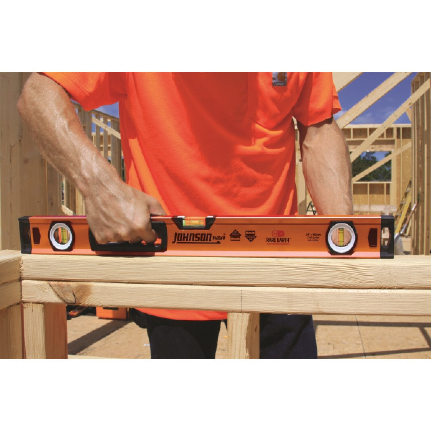 Jobsites are rough, and Johnson's levels are designed to be strong and durable enough to take on that jobsite abuse. This box level comes equipped with solid block acrylic vials that won't fog, leak or break, and the shock absorbing endcaps protect the level when dropped, ensuring it stays accurate for life. When working in poorly lit areas, the SurroundView® vials reflect ambient light to keep them easy to read. This box level features strong rare earth magnets that hold the level securely in place on flat or round ferrous surfaces.