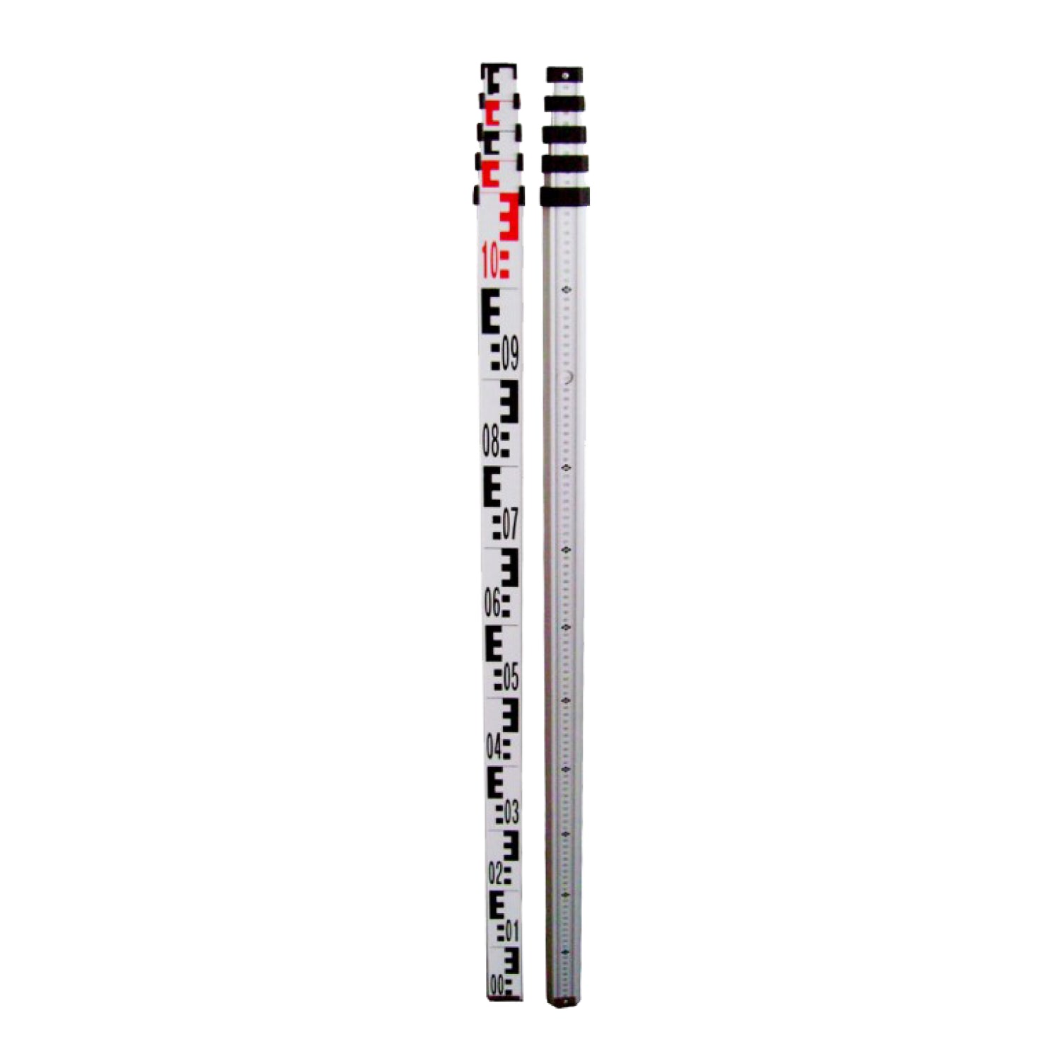 Durable, accurate and convenient, this 5-meter metric aluminum grade rod is ideal for reading elevation changes on your jobsite. Its durable aluminum construction and protective anodized finish make it durable to last on even the toughest jobsites. With dual graduations of centimeters/millimeters on the front and an E scale (decimeters) on the back, the grade rod conveniently and clearly provides the measurements you need. And thanks to the snap on circular leveling vial, you'll know your measurements are always correct. It also features a 5-section telescoping construction and included nylon carrying bag for easy storage.