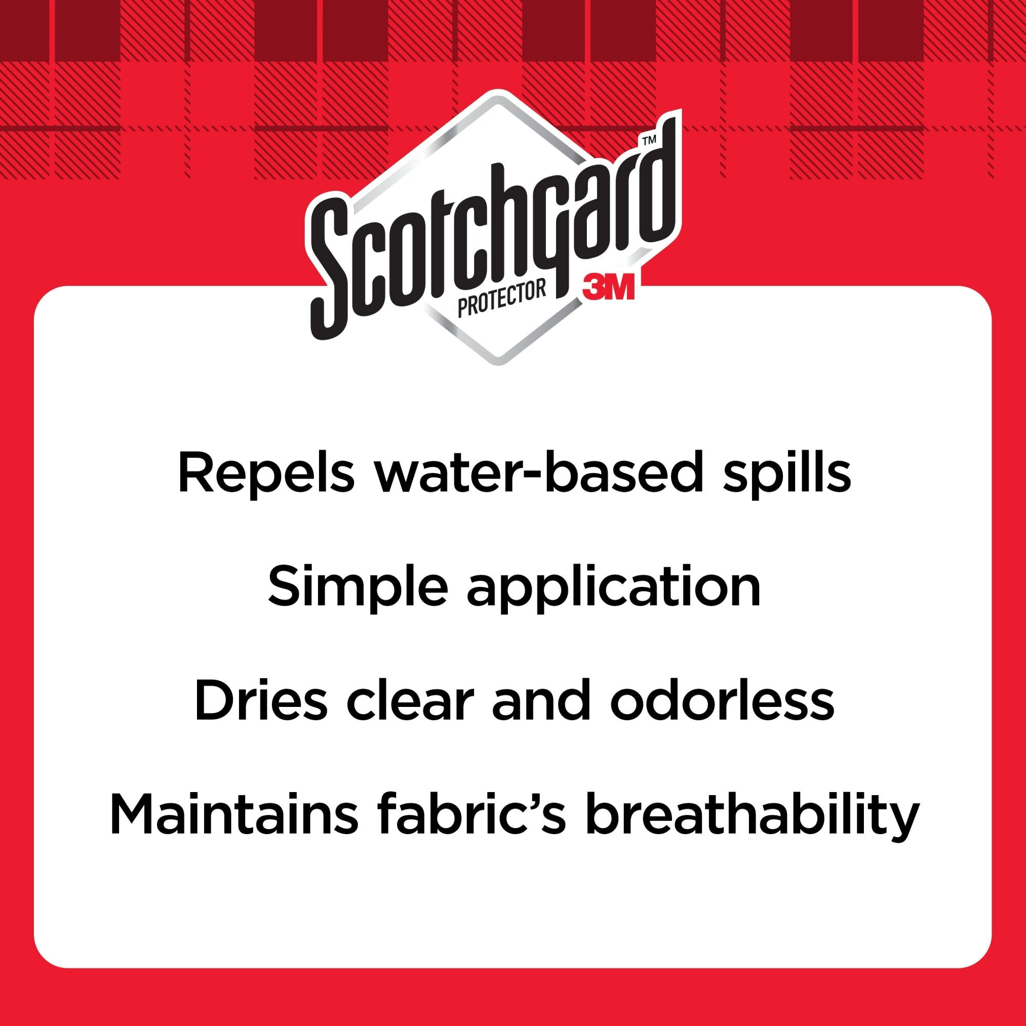 Fabric Water ShieldProtect the things you love with Scotchgard™ Fabric Water Shield. Whether it's a brand new couch, or your little black dress, Scotchgard™ Fabric Water Shield helps repel water based spills without changing the feel of the fabric. That means you can wipe the surface clean before the mess sinks in for beautiful, long lasting wear. So host a family get together, or wear your favorite jacket with confidence knowing that Scotchgard™ Fabric Water Shield is your secret defender from life's little mishaps.