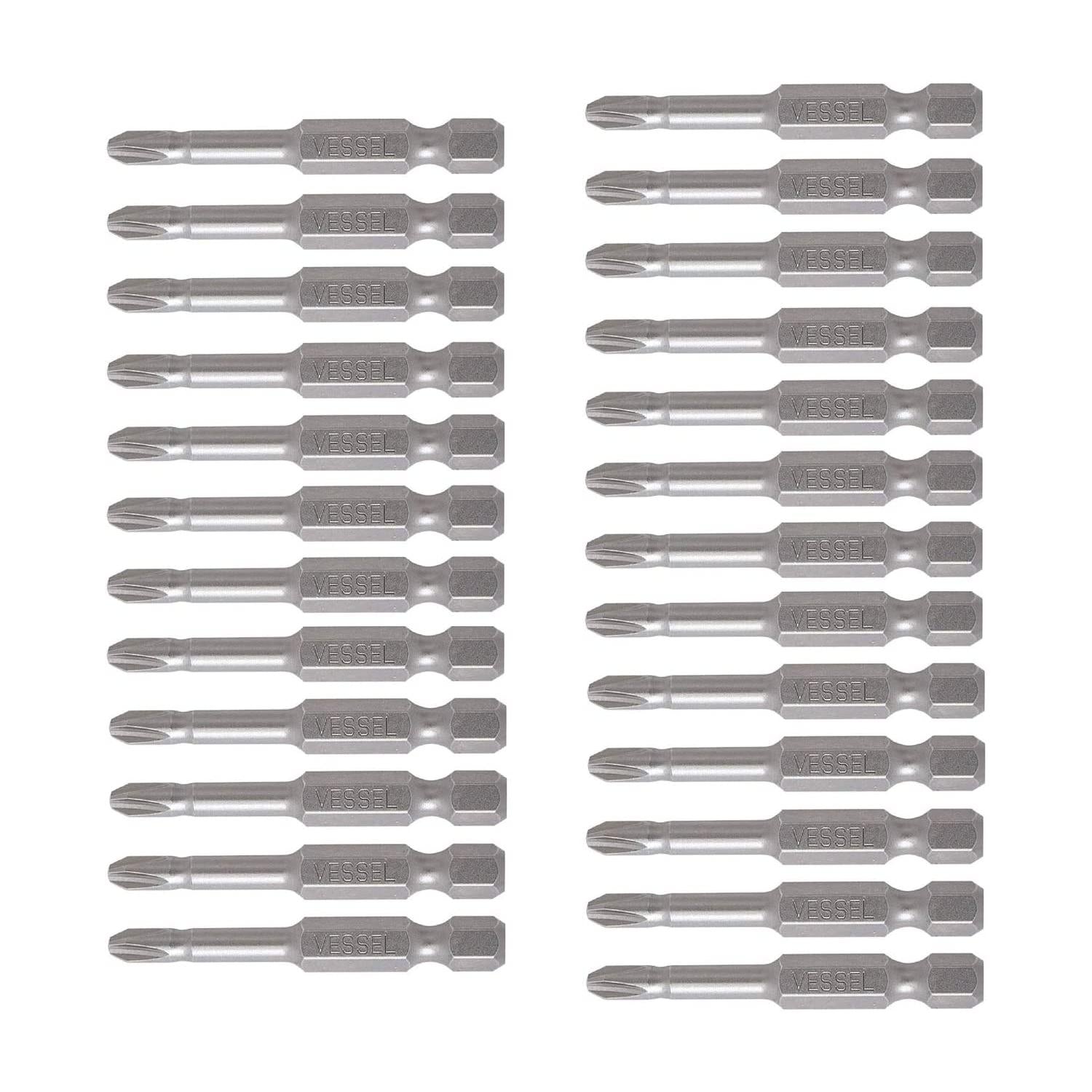 Vessel Tools NTPH250P25K Neck Torsion Power Bits, PH2 x 50 mm, Bulk 25 Pc.