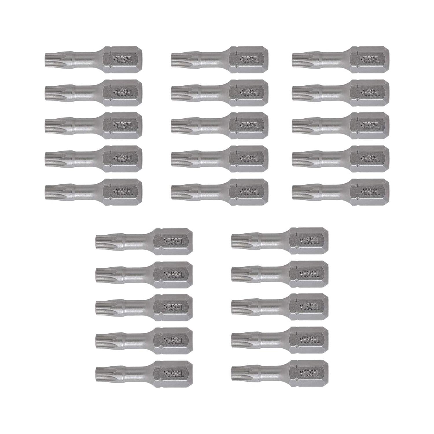 Vessel Tools NTTX20254P25K Neck Torsion Power Bits, T20 x 25.4 mm, Bulk 25 Pc.
