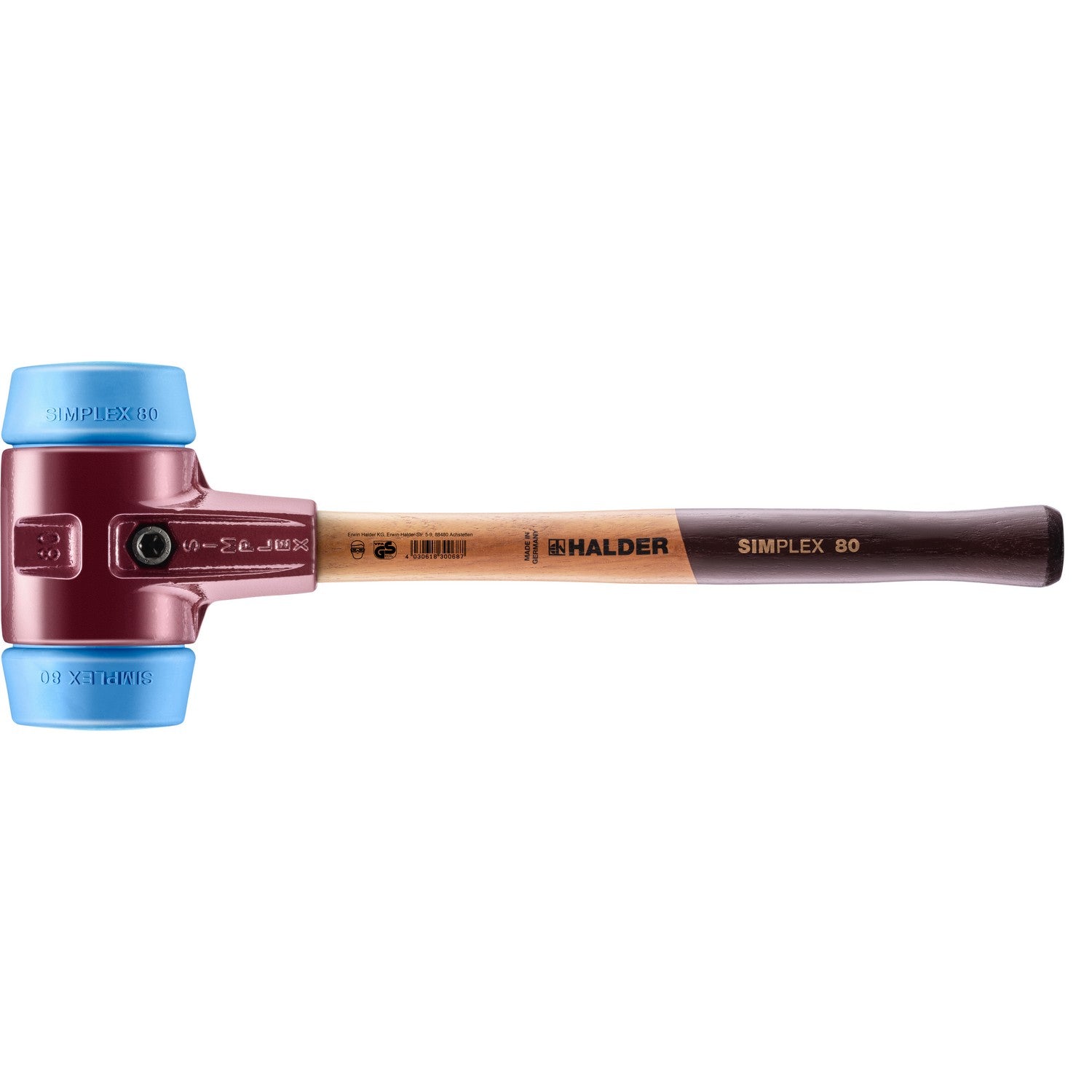 Halder 3001.080 Simplex Mallet with Soft Blue Rubber Inserts, Non-Marring / Cast Iron Housing and Wood Handle