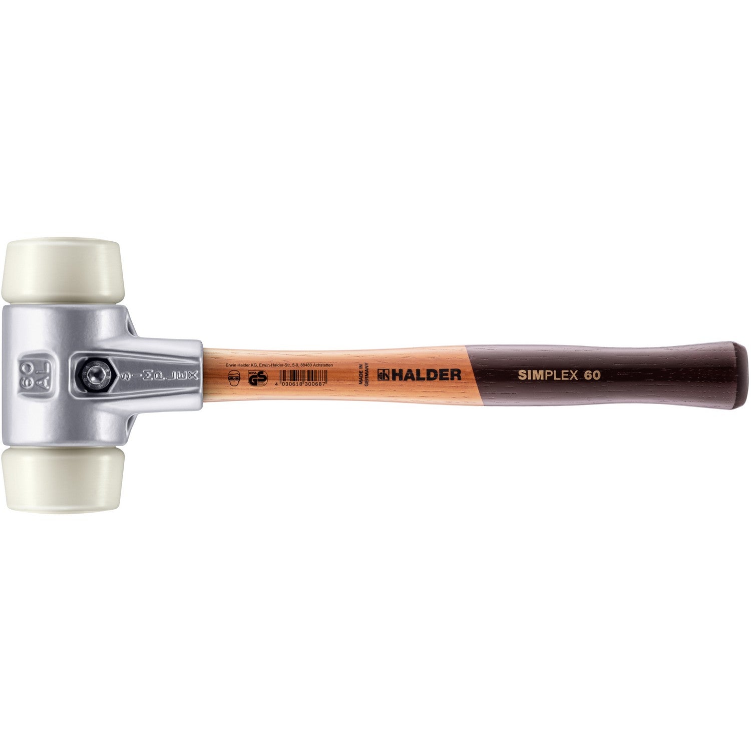 Halder 3108.060 Simplex Mallet with Nylon Inserts Lightweight Aluminum Housing and Wood Handle