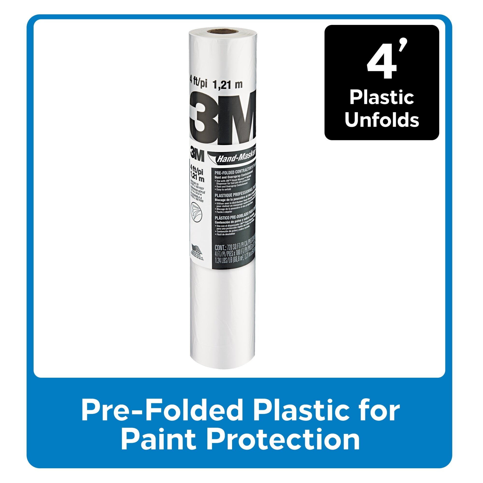 3M Hand Masker Pre Folded Contractor's Plastic is 3M's most flake resistant film for single coat paint applications. Use with 3M Hand Masker M3000 Dispenser for fast paint masking. Great for dust and fume containment. Saves time and money. 3M Hand Masker Pre Folded Contractor's Plastic is 3M's most flake resistant film for single coat paint applications. Use with 3M Hand Masker M3000 Dispenser for fast paint masking. Great for dust and fume containment. CP4 ideal for single doors, small/medium windows and furniture, CP6 ideal for countertops, cabinets, tubs, showers and large/bay windows, CP9 ideal for patio/double doors, walls, large/bay windows, and CP12 ideal for rooms with high ceilings, very large windows and masking off openings. Use indoors and outdoors. Saves time and money.