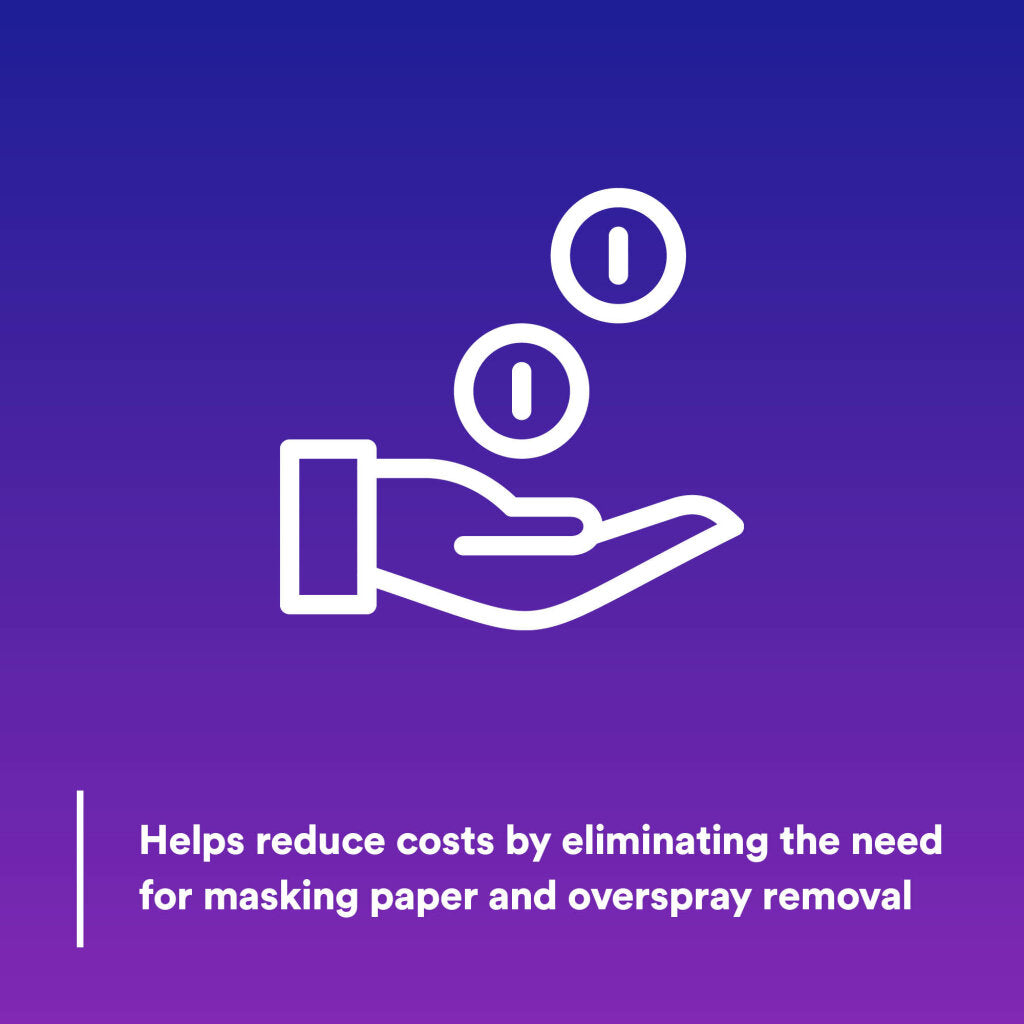 - Reduces costs associate with removing overspray