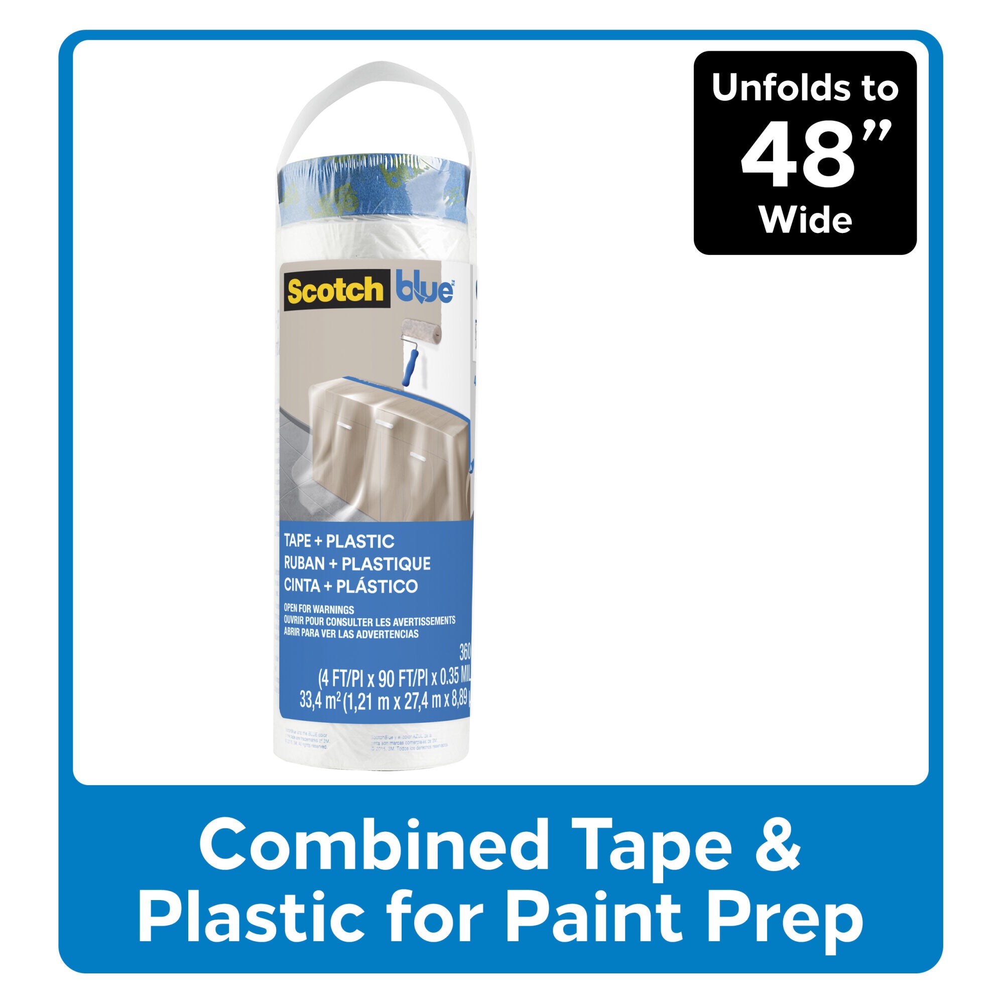 - Performance: Scotchblue Tape + Plastic Combines Plastic And Scotchblue Sharp Lines Painter'S Tape Into One Product Allowing For Quicker And Easier Application Than Applying Film And Tape Individually