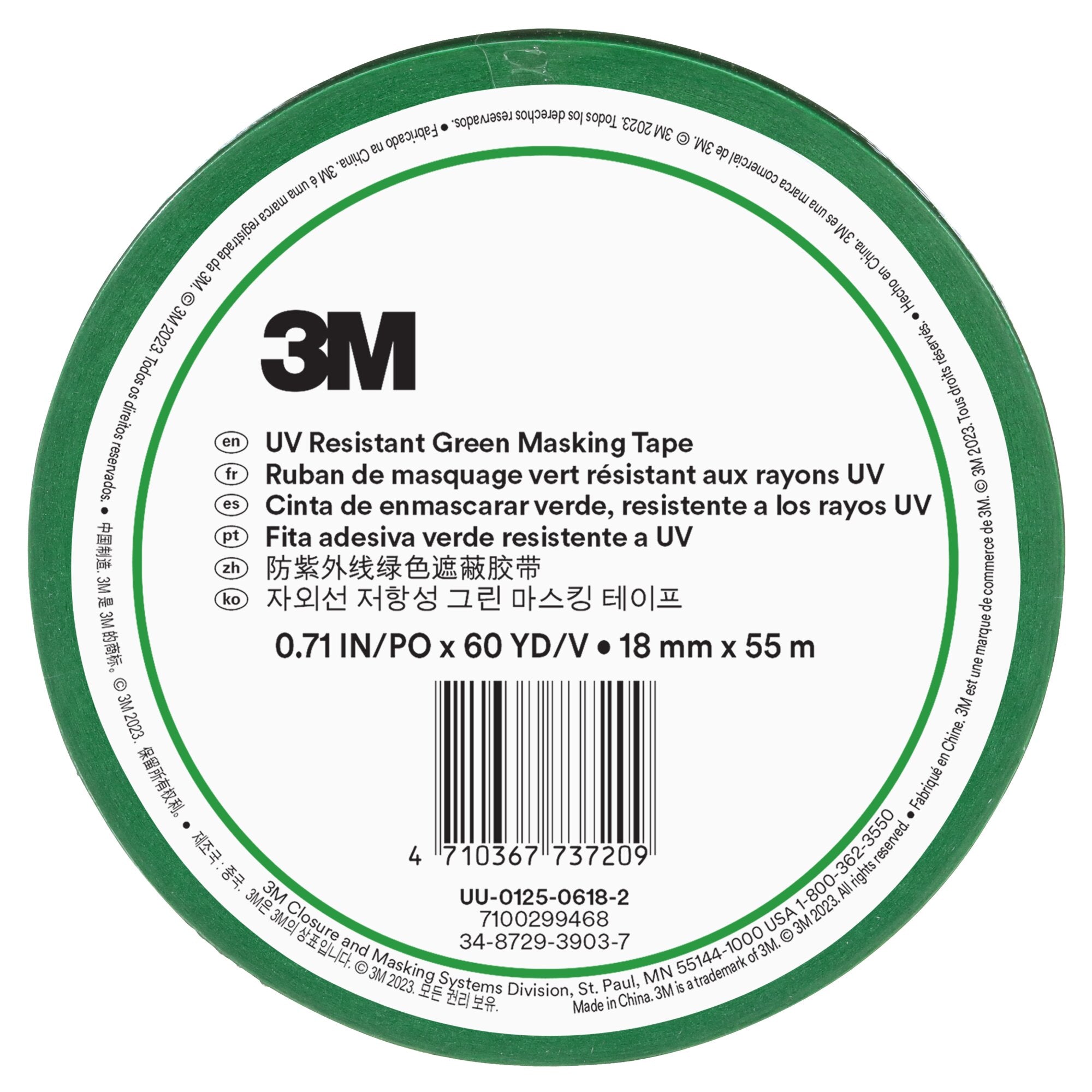 3M UV Resistant Green Masking Tape, 18 mm x 55 m