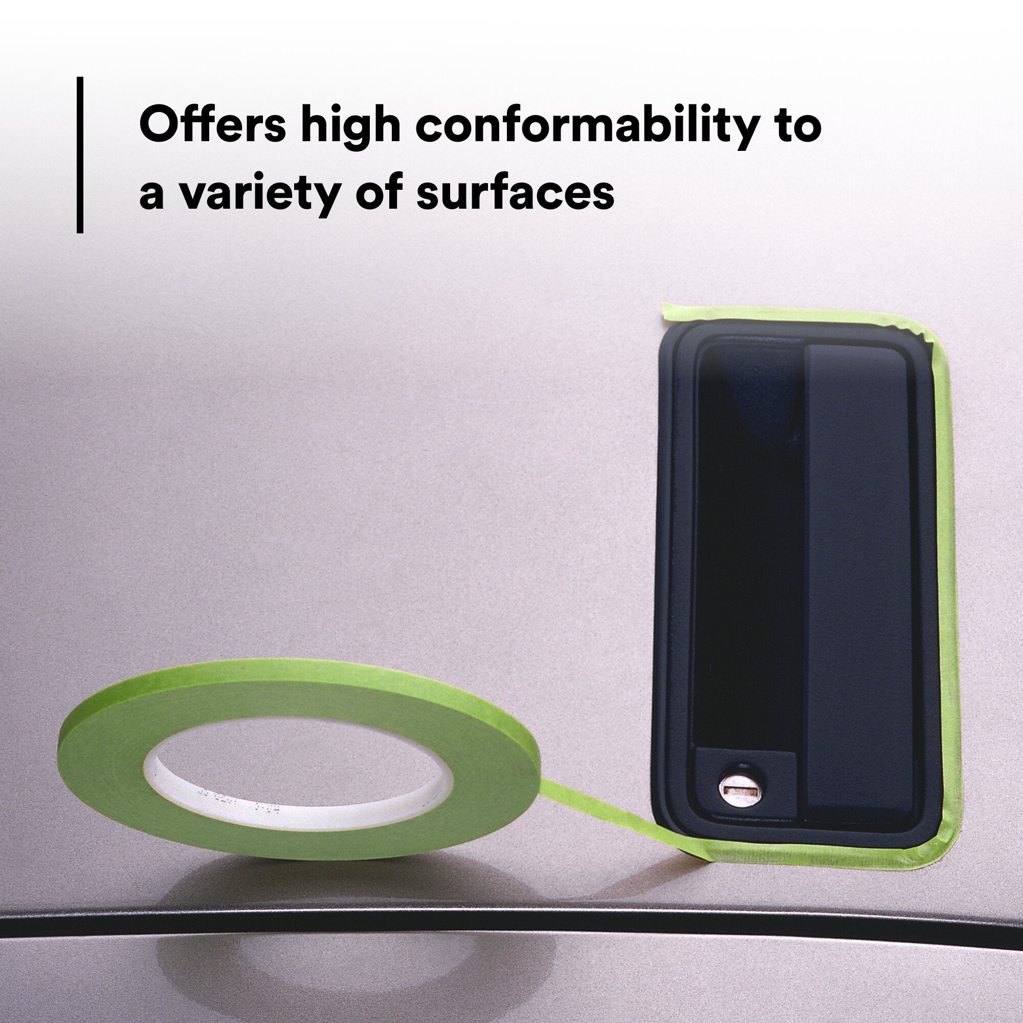 Scotch Performance Green Masking Tape 233+ delivers consistently superior performance on moldings, plastic, glass, metal, rubber and paint. Balanced four-part construction includes flexible backing that applies easily around vehicle curves and contours and the patented adhesive that sticks at a touch, stays put and removes without transfer for consistently outstanding paint lines.Built for Automotive Aftermarket Work Through and Through