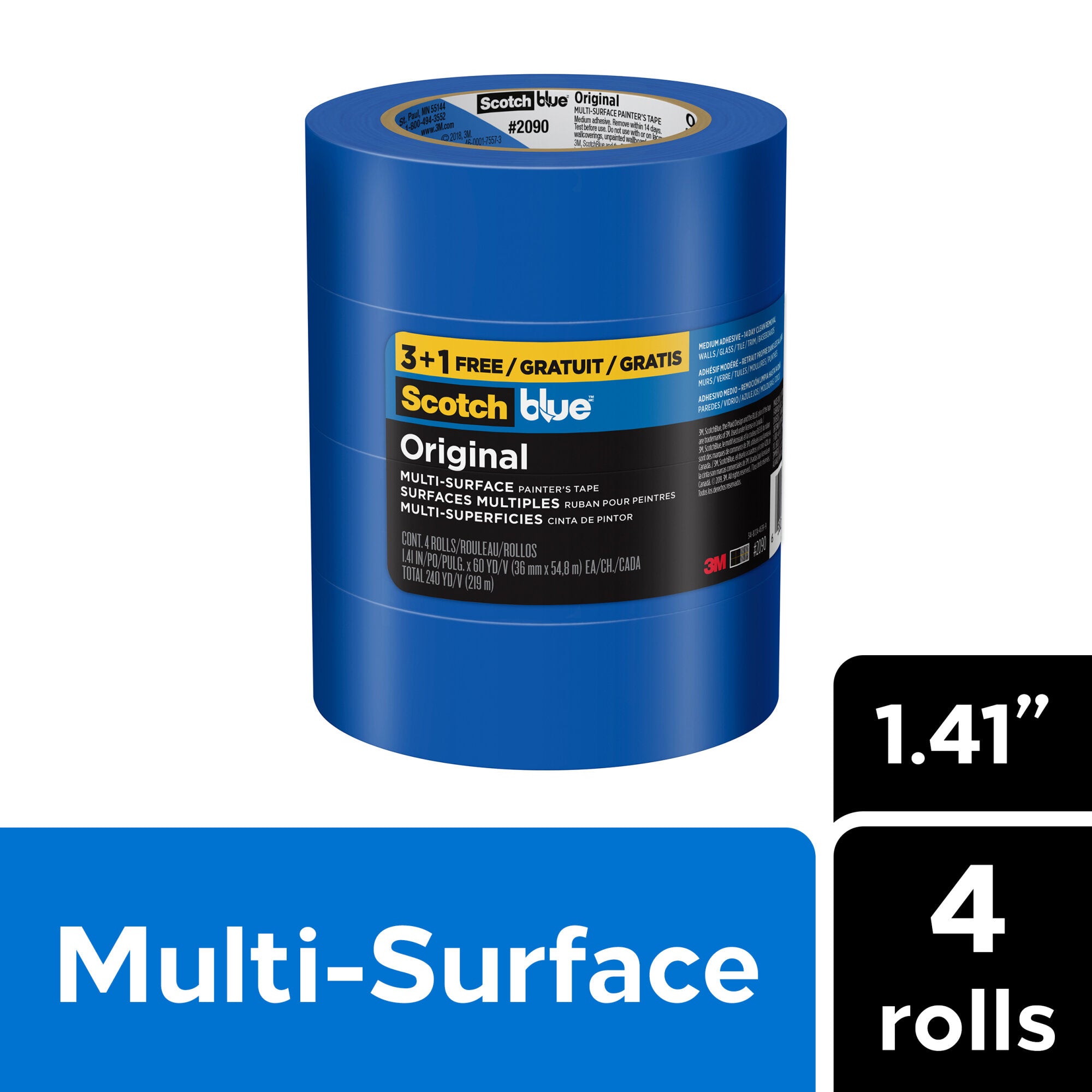 ScotchBlue Original Painter's Tape is the tape that DIY painter's and pros have loved for more than 30 years. Whether you're protecting your wood trim, painted walls, tile floor, or glass windows, this versatile multi-surface tape can stay on surfaces for up to 14 days and then removes easily without leaving any sticky residue behind. Help protect your surfaces while bringing your creative vision to life with the help of ScotchBlue Original Painter's Tape.