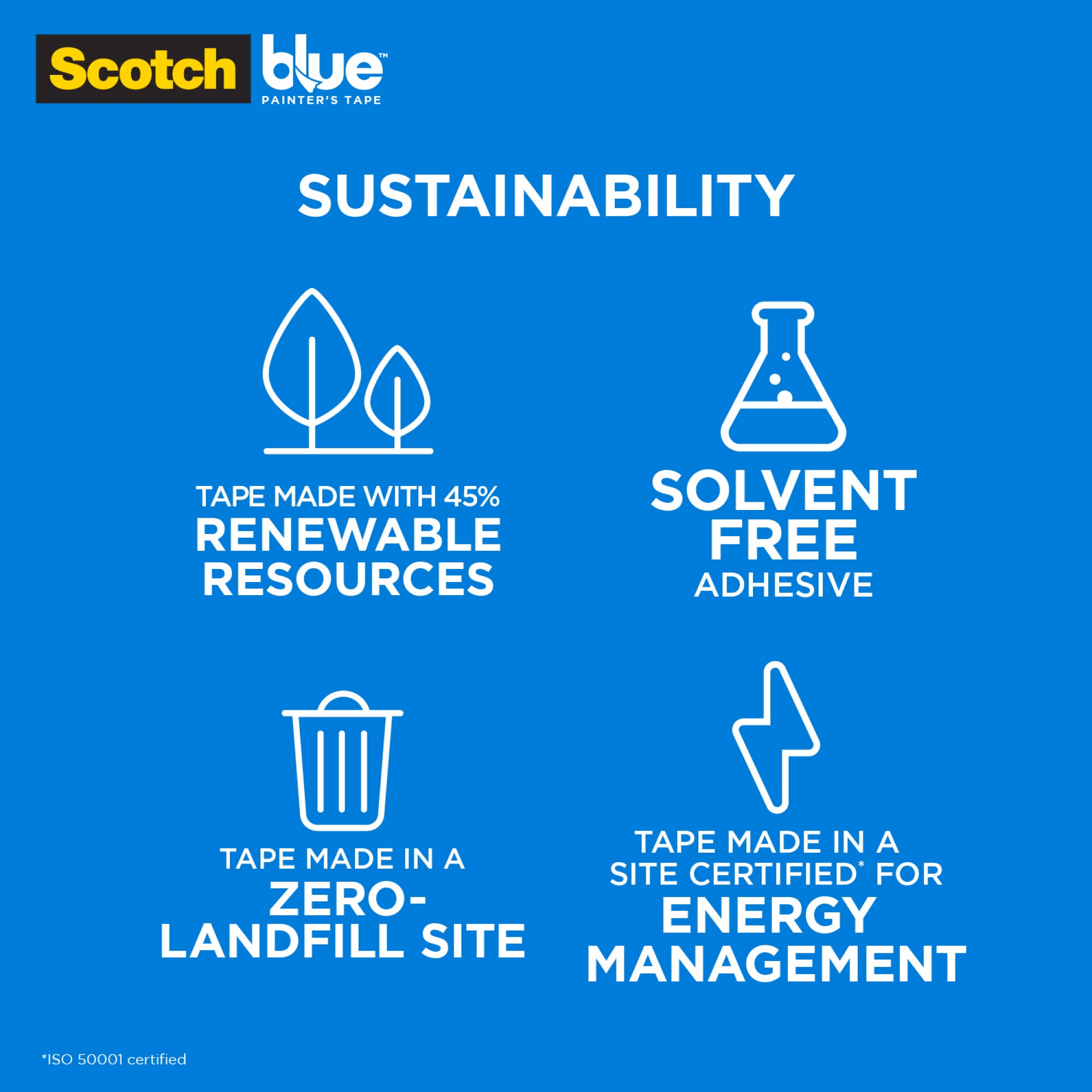 • Sustainability: Made From 45% Renewable Resources; Solvent-Free Adhesive; Tape Made In A Zero-Landfill Site Certified For Energy Management (Iso 50001 Certified), Core Made With 70% Post-Consumer Waste