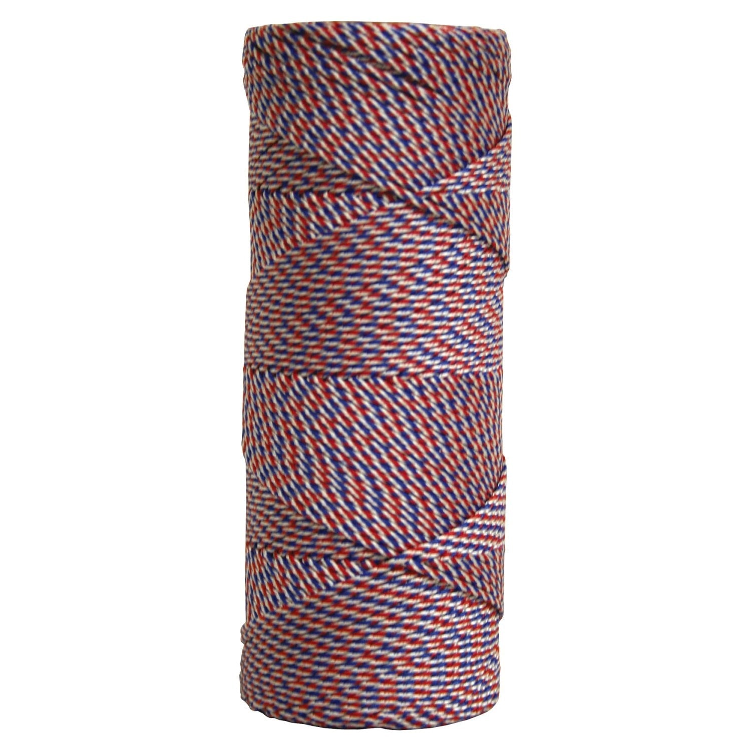 Show your all-American pride with this unique braid of red, white and blue nylon line. This tube of 1,000' of line is great as mason's line for a strong, tight line, or any odd jobs where a superior line is needed. The special braiding process creates extra elasticity which helps eliminate any sagging in this line making it perfect for laying out even rows of block and brick. This long-wearing, tough, #18 red, white, and blue line is easy to see on the job site. The nylon line won't mildew, nor be affected by oil or mortar. The nylon material won't absorb water or see the effects of moisture and humidity like other lines. The tight braid can be pulled taut along block and line holders for a straight accurate line. The line is abrasion and alkali resistant and stands up to the abuse of a job site from trowels striking it. The line is tested to 170 lbs. for superior hold.