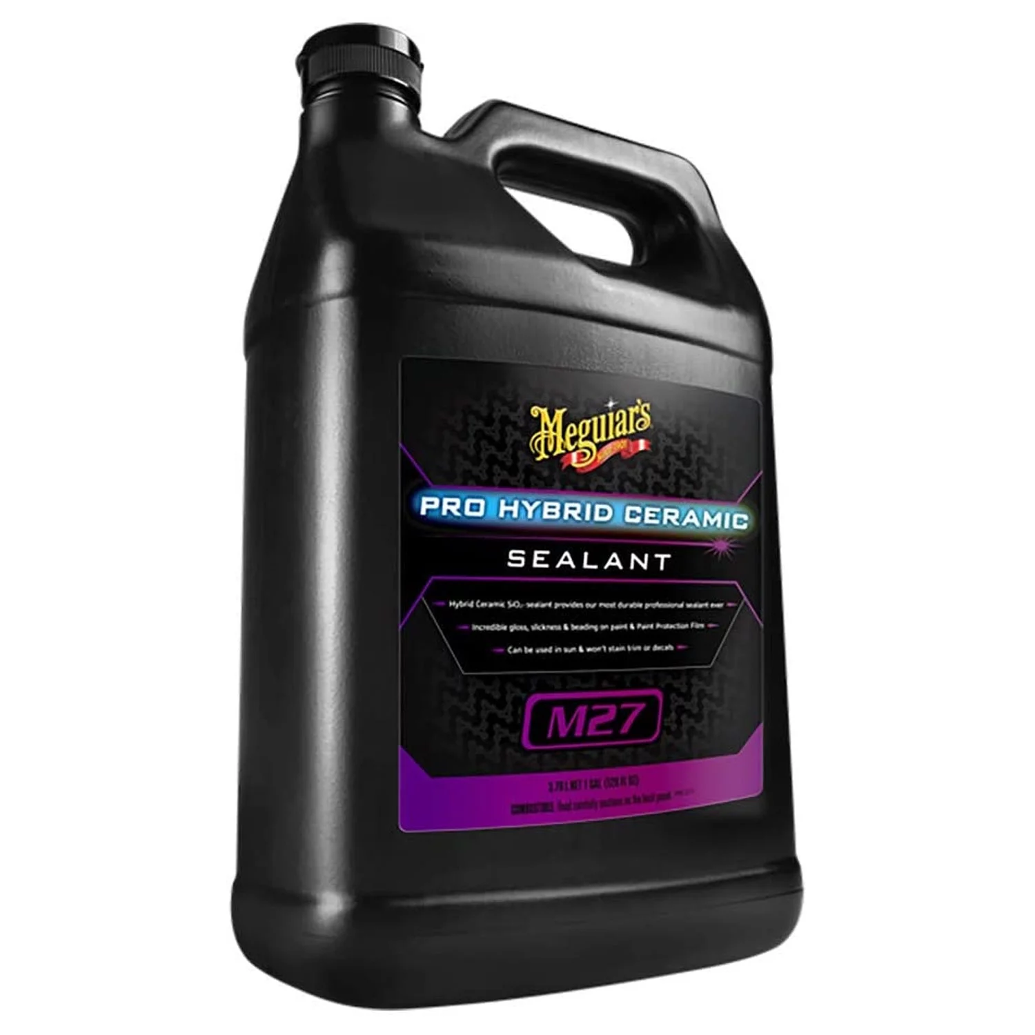 Meguiar's M27 Hybrid Ceramic Sealant is an advanced formulation uniquely tailored to deliver a professional strength liquid sealant that offers the best Hybrid Ceramic technology available. With a true Si02 foundation, this ceramic hybrid sealant is formulated to deliver outstanding durability in an extremely easy to use format. It can be applied by hand or by dual action polisher like a sealant, but it allows for longer curing time before wiping off so it can be applied to the entire vehicle before removing. This all-new formula was engineered from the ground up, delivering a brilliant gloss and slickness and can be applied as an extremely durable stand-alone sealant or applied over another wax, sealant or Paint Protection Film for additional protection. Not only is it very easy to use and wipe off, but it’s also safe on plastic trim & decals without leaving behind any stains or white residue. Meguiar's M27 Hybrid Ceramic Sealant is available in 16 ounce and 1 gallon sizes.