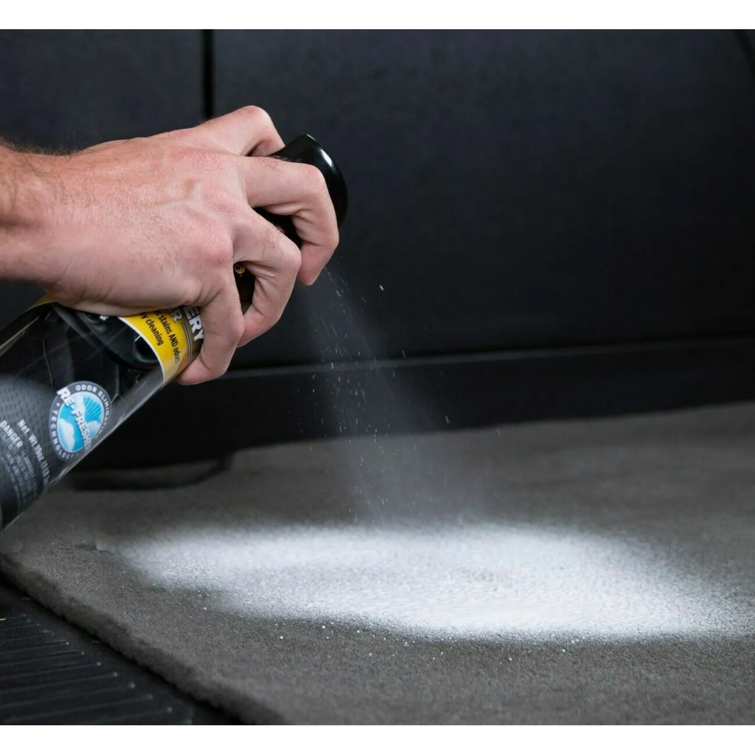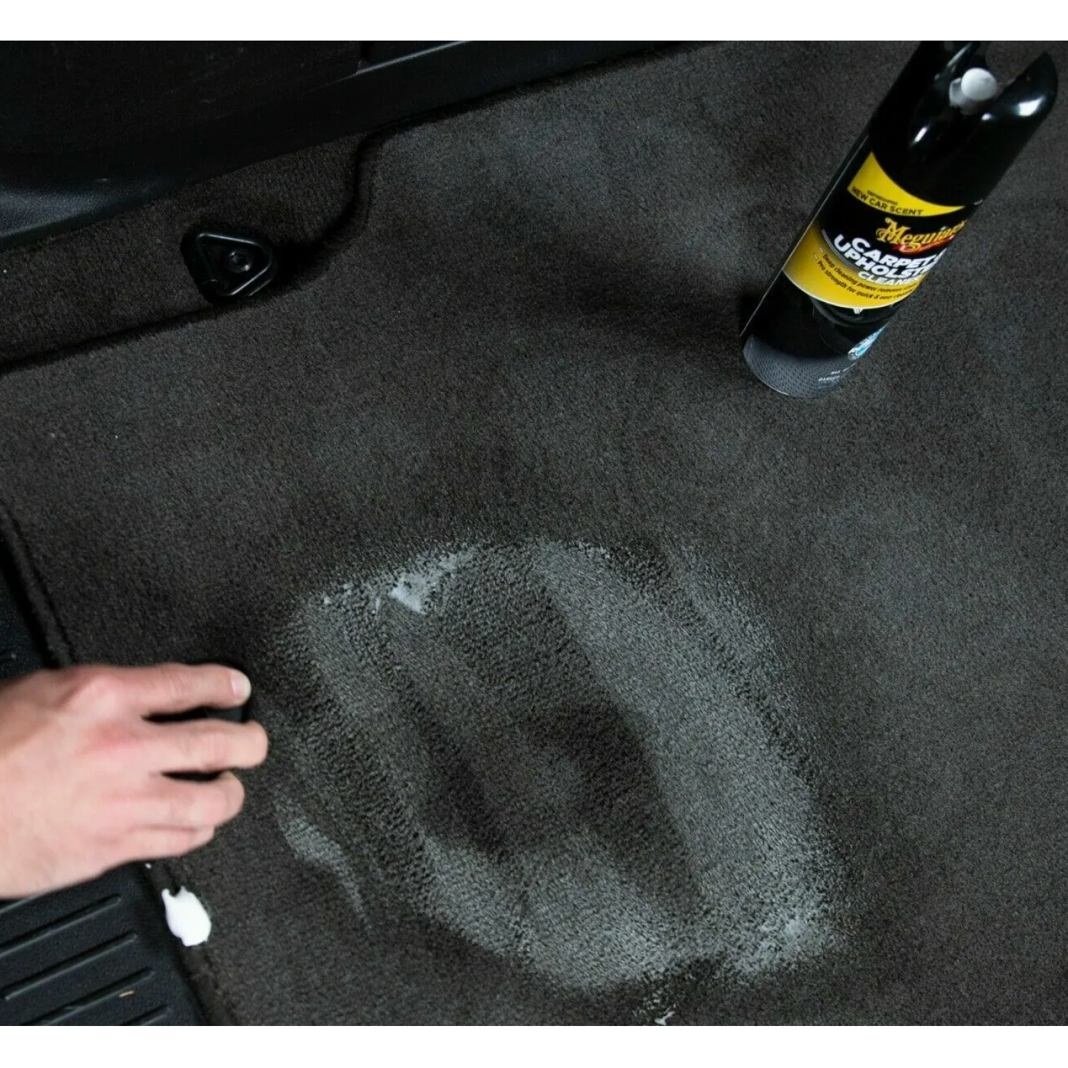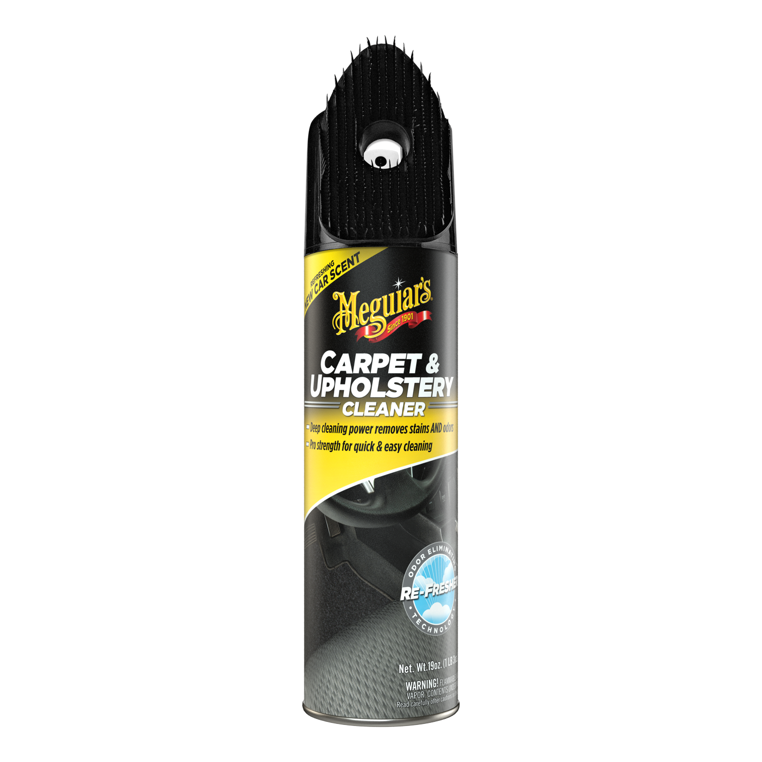 Whether you are looking to clean one stain or freshen the entire interior, Meguiar’s Carpet and Upholstery Cleaner is perfect for the job. Active foam quickly penetrates & dissolves stains from the bottom up for deep down cleaning. This effective blend of cleaners and surface active agents removes the toughest stains and helps to restore a like-new appearance on car carpet and upholstery. The newly redesigned canister now comes with a carpet scrubber top that helps deliver improved cleaning ability. This effective formula also contains odor eliminating Re-Fresher Technology to permanently* remove odors while leaving behind a refreshing New Car Scent.