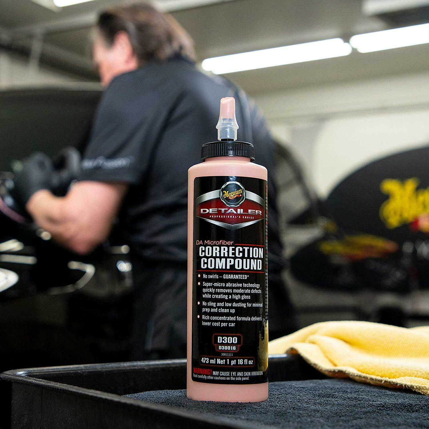 Meguiar’s® DA Microfiber Correction Compound – D300 utilizes super-micro abrasive technology to quickly remove scratches, acid rain, swirls, holograms and other light to moderate defects on factory paint. Designed for use with Meguiar’s® DA Microfiber Cutting Disc delivering no sling, low dusting performance for minimal prep and clean up time.