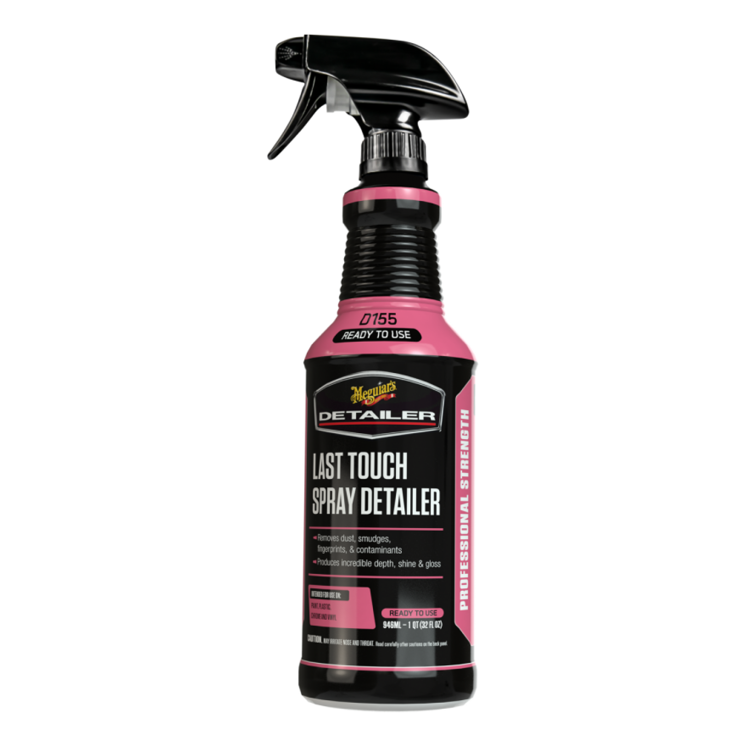 Meguiar's D155 Last Touch Spray Detailer is the perfect spray detailer for anyone detailing cars at home, on the side or full-time to lift fresh contaminants and obtain incredible depth, shine and gloss. This professional detailer spray simply sprays on and wipes off for enhanced gloss and protection. Our unique blend of polymeric lubricating agents gently removes dust, fingerprints, smudges and other contaminants to leave a flawless showroom shine. Also, since Last Touch Spray Detailer is already pre-diluted at 1:1, it makes the perfect lubricant to use with Meguiar's Professional Detailing Clay C2000 & C2100.