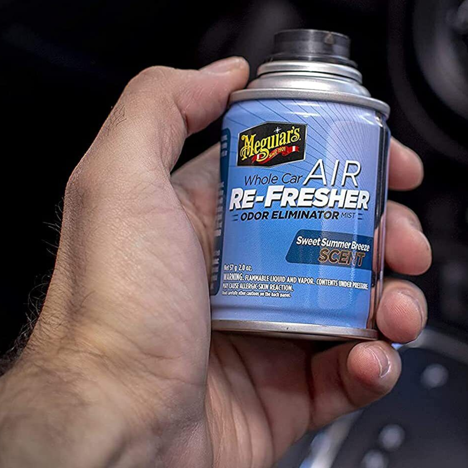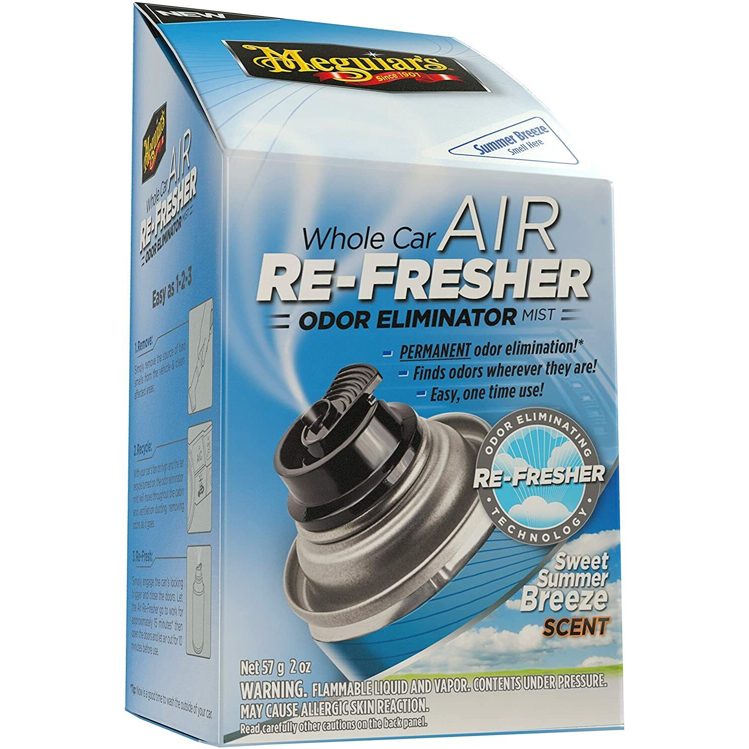 Now you can enjoy the refreshing smells of a summer breeze anytime. Meguiar's® advanced Re-Fresher technology not only removes unwanted odors wherever they hide, but also replaces odors with a pleasant sweet summer breeze scent that lasts for weeks.* Our molecular odor eliminating chemistry works great at permanently removing smells like cigarette smoke, wet dog, work-out gear and more. *Meguiar's® Re-Fresher technology permanently removes existing bad odors through chemical bonding at a molecular level.
