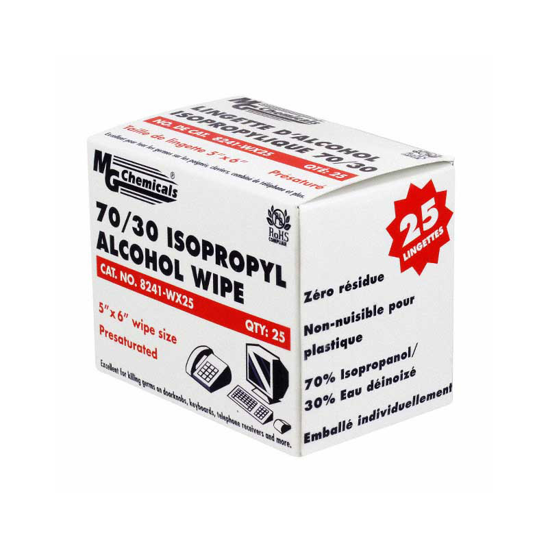 Mg Chemicals 8241-WX25 70/30 IPA Wipes, 25 Wipes