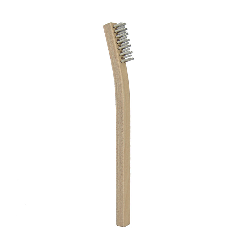 A 3-row heavy duty toothbrush-style scratch brush with stainless steel bristles and long plywood handle. Great for cleaning soldering iron tips. Great for cutting corrosion. Great surface scratcher, it is perfect for solder surface preparation. It is an excellent utility brush.