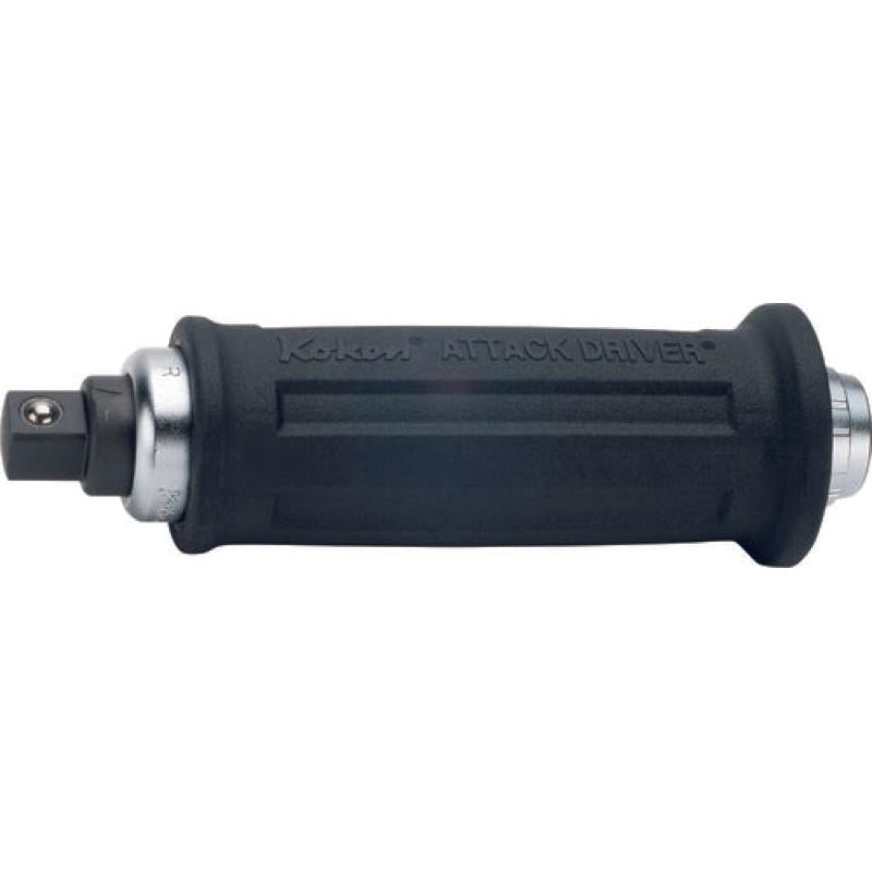 Ko-ken 4112G 1/2 Sq. Dr. Attack Driver Length 163mm Rubber Grip. The Koken attack driver is a hand impact driver that converts your hammering strength into torque to remove stuck or rusted screws by an instantaneous shock to the head of the Attack Driver. The head of the Attack Drive has a black finished with the plating removed to prevent flaking, its body has serrations and is designed to be gripped firmly, it is easy to transmit the maximum torque on impact when striking the attacking head. The Attack Driver works with Bits or Sockets to remove Screws or Bolts. Remove stuck or rusty screws or bolts with the Koken Attack Driver.