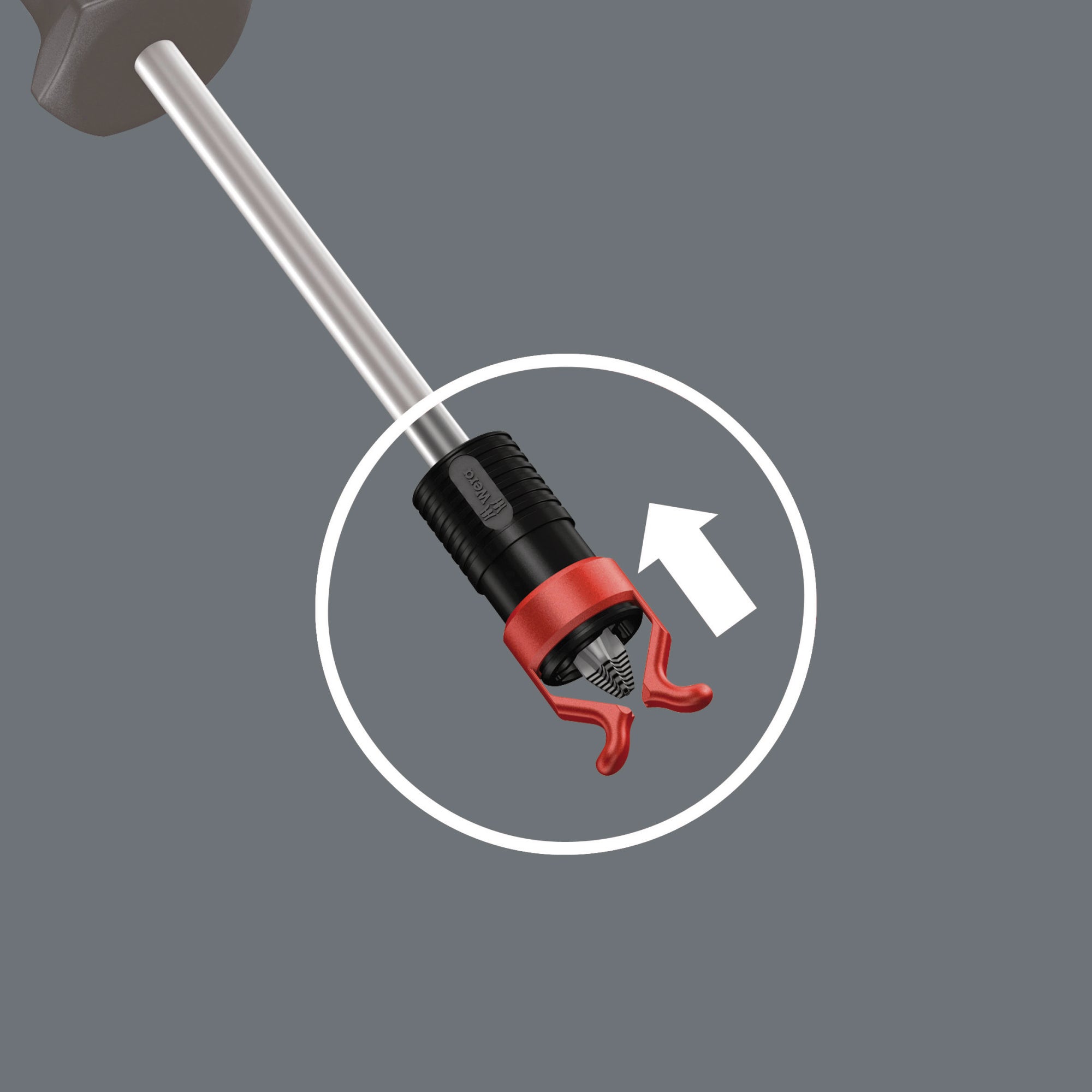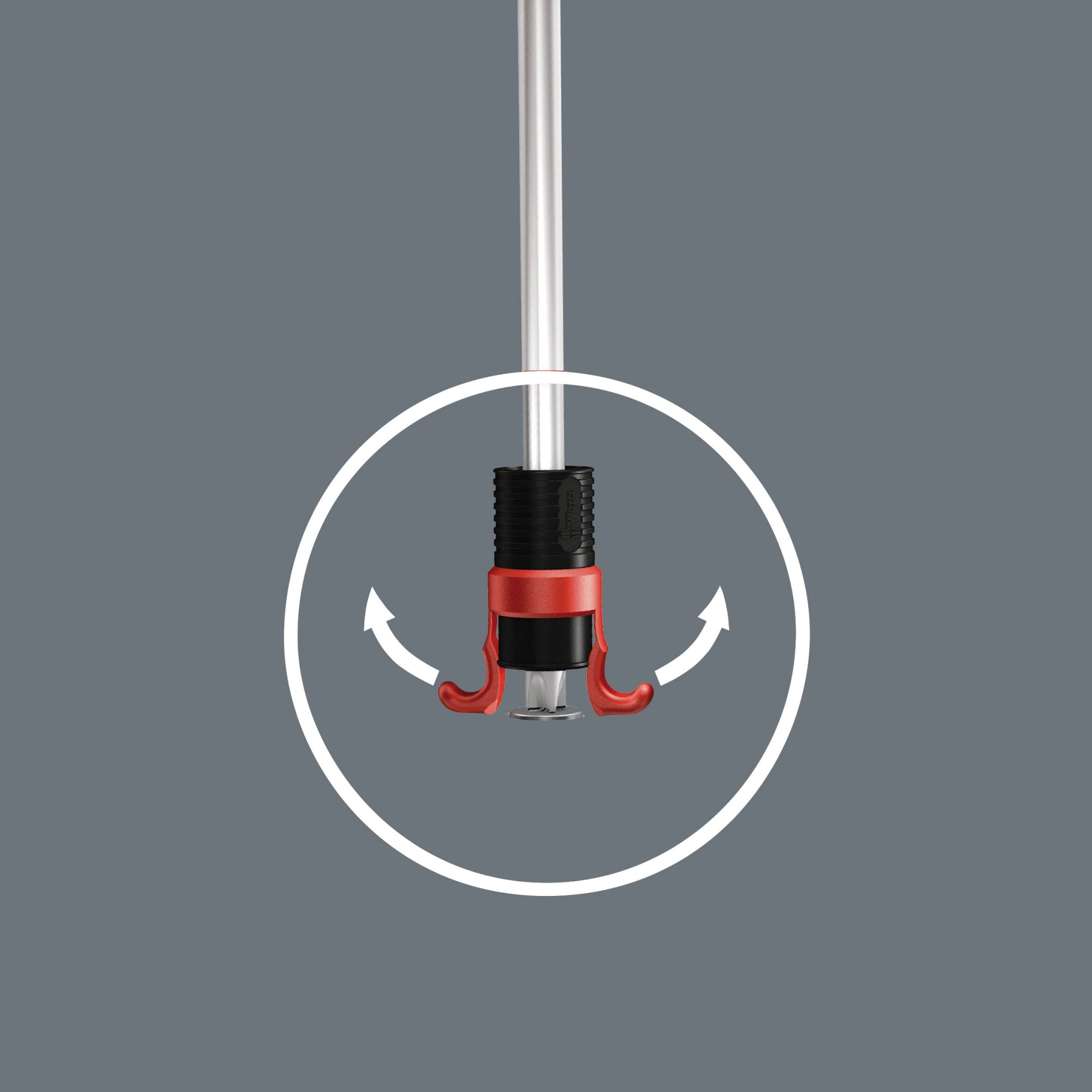 Once held, the gripper slides up the screwdriver shaft to finish up