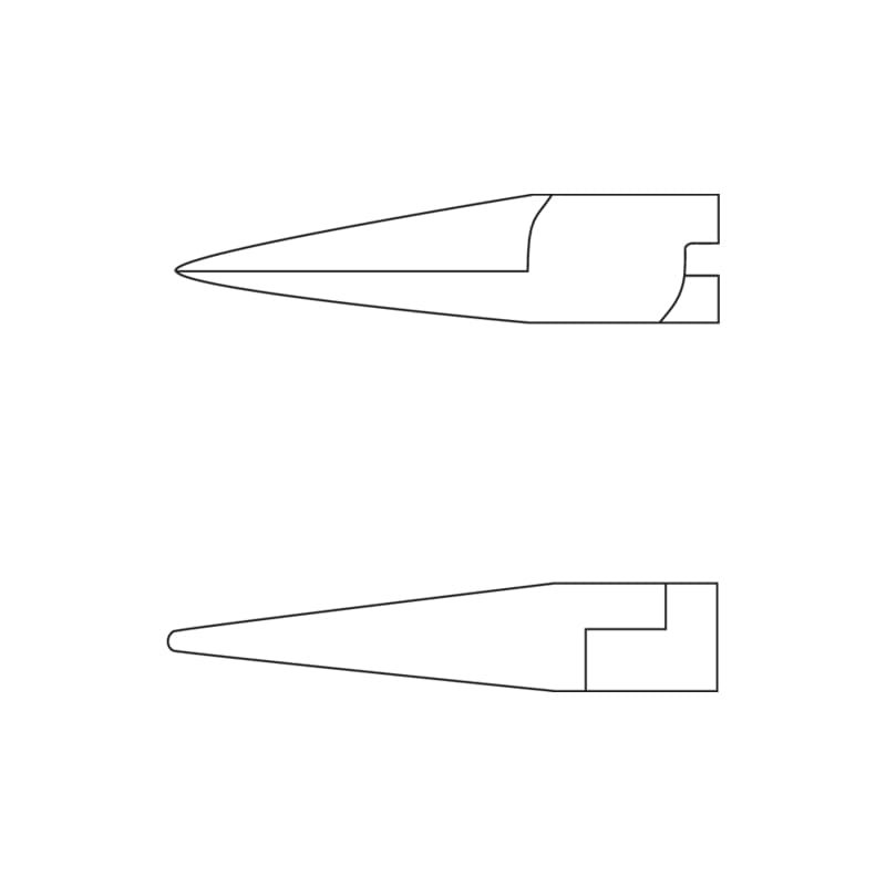 Needle nose electronic pliers. Smooth-ground gripping faces.