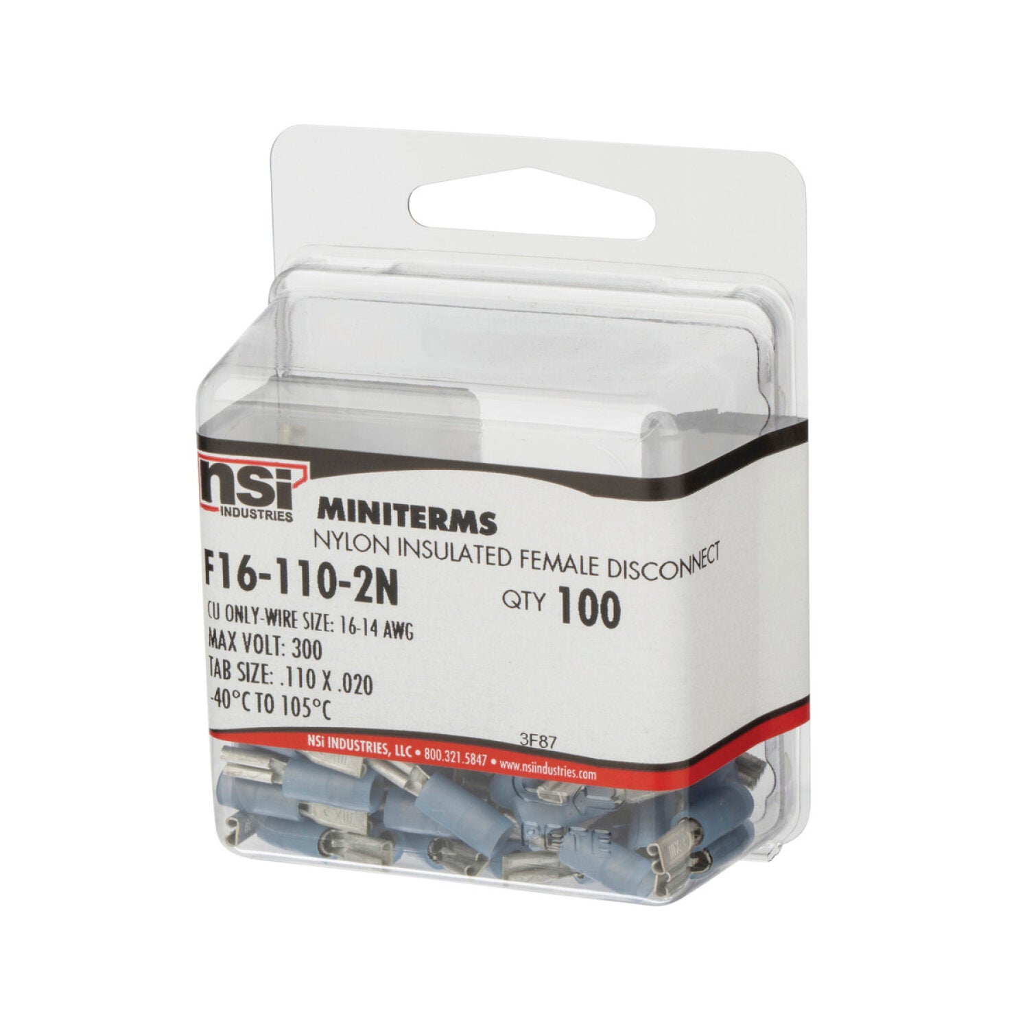 NSI F16-110-2N 16-14 Awg Nylon Insulated Female Disconnect .110X.020 Tab 100 Per Pack