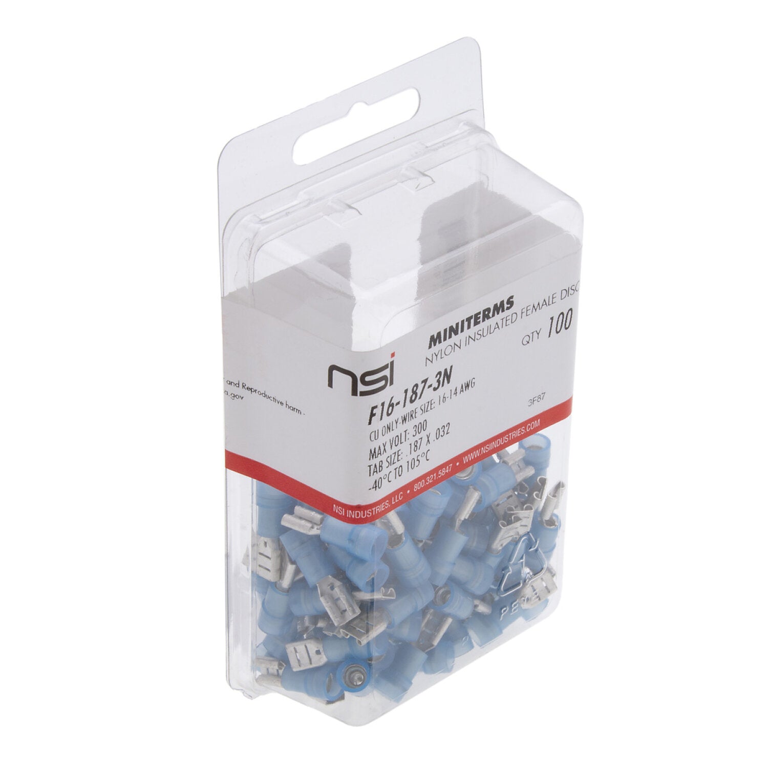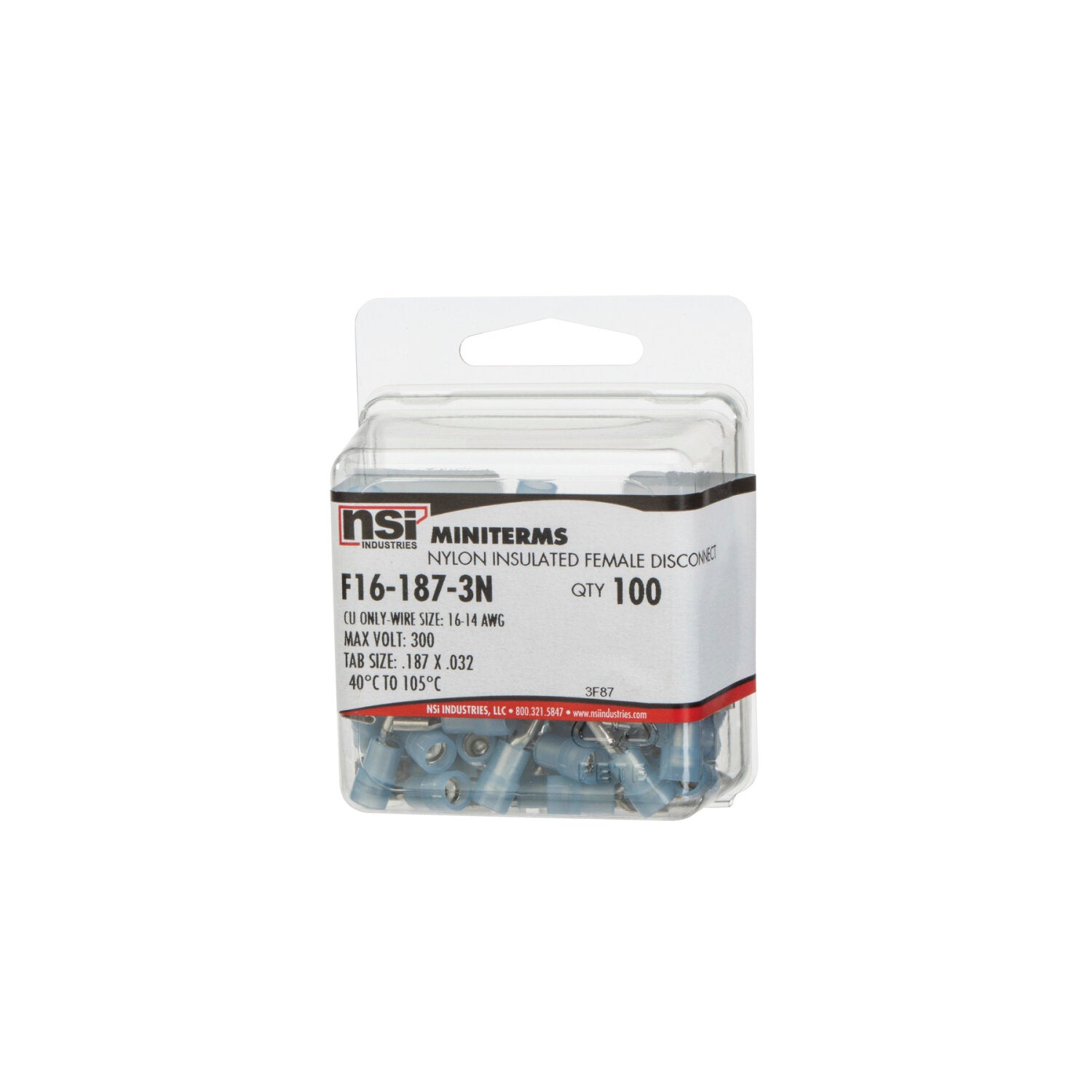NSI F16-187-3N 16-14 Awg Nylon Insulated Female Disconnect .187X.032 100 Per Pack.