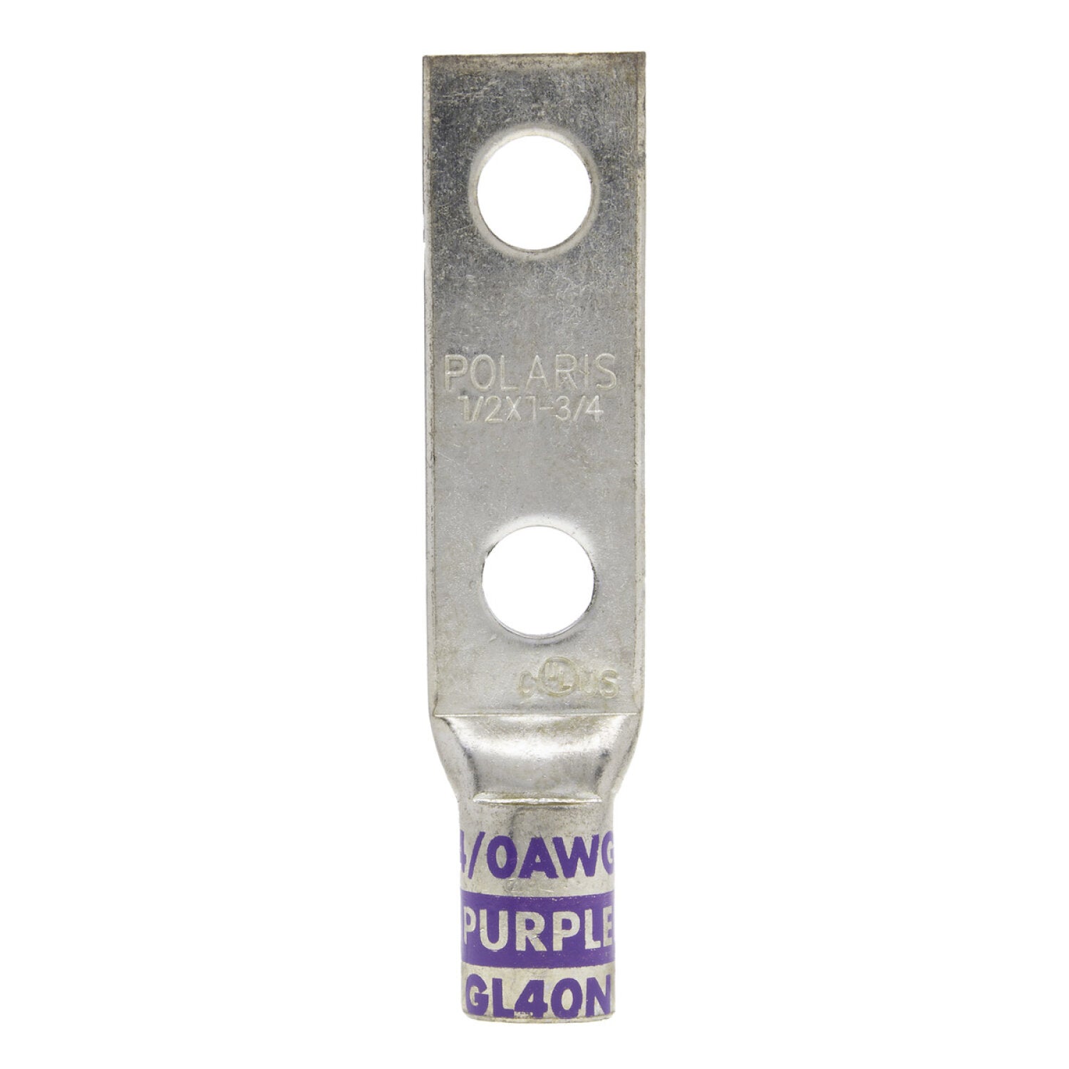 NSI GL40N 4/0 AWG 1/2” 2-Hole Copper Short Lug – Purple
