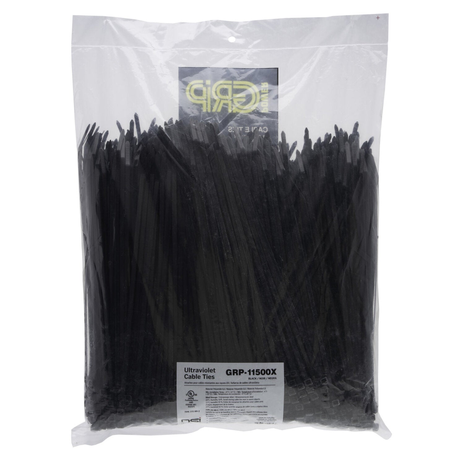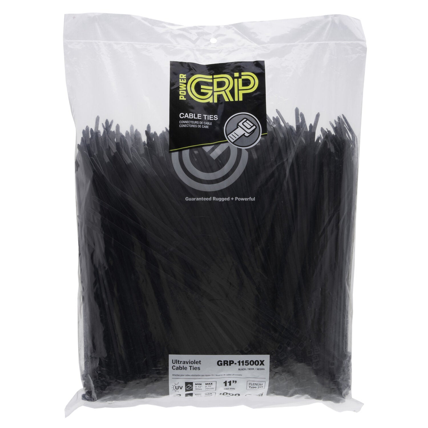 NSI GRP-11500X 11”, Black General Purpose 50lb Cable Ties, 1000 Bulk Pack