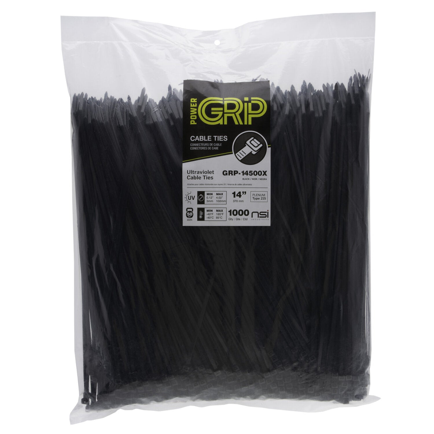 NSI GRP-14500X 14”, Black General Purpose 50lb Cable Ties, 1000 Bulk Pack
