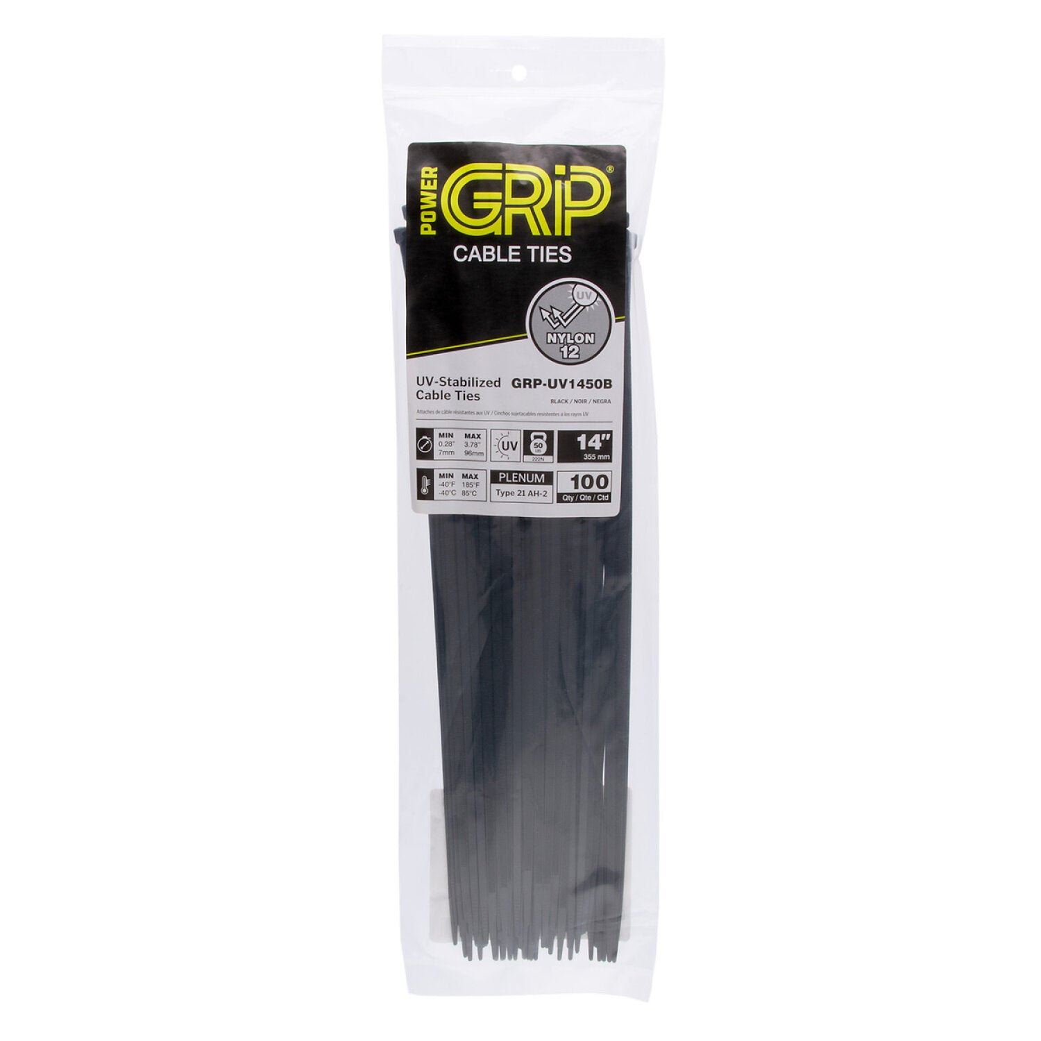 NSI GRP-UV1450B 14” Black UV-Stabilized 50lb Cable Ties, 100 Pack