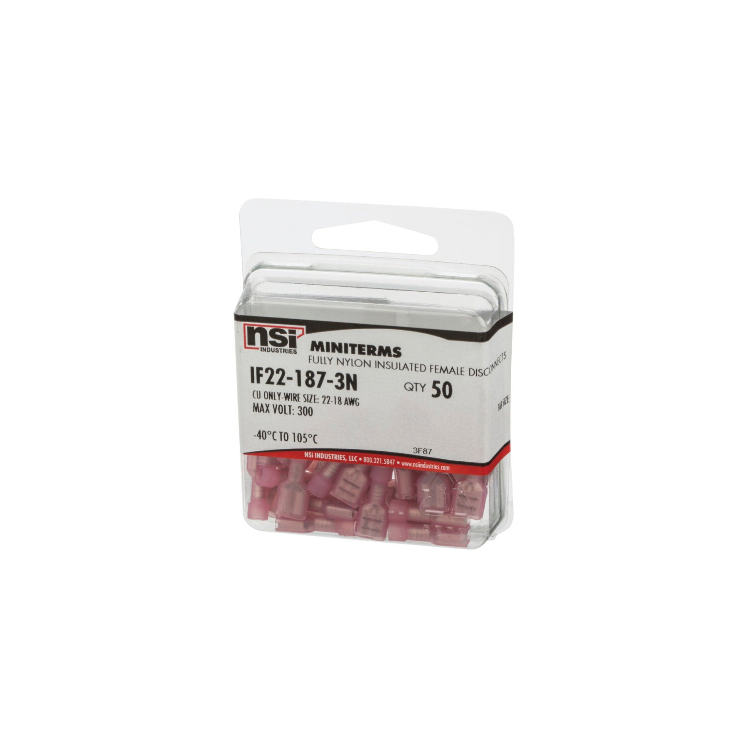NSI IF22-187-3N 22-18 Awg Fully Insulated Female Disconnects Nylon 50 Per Pack