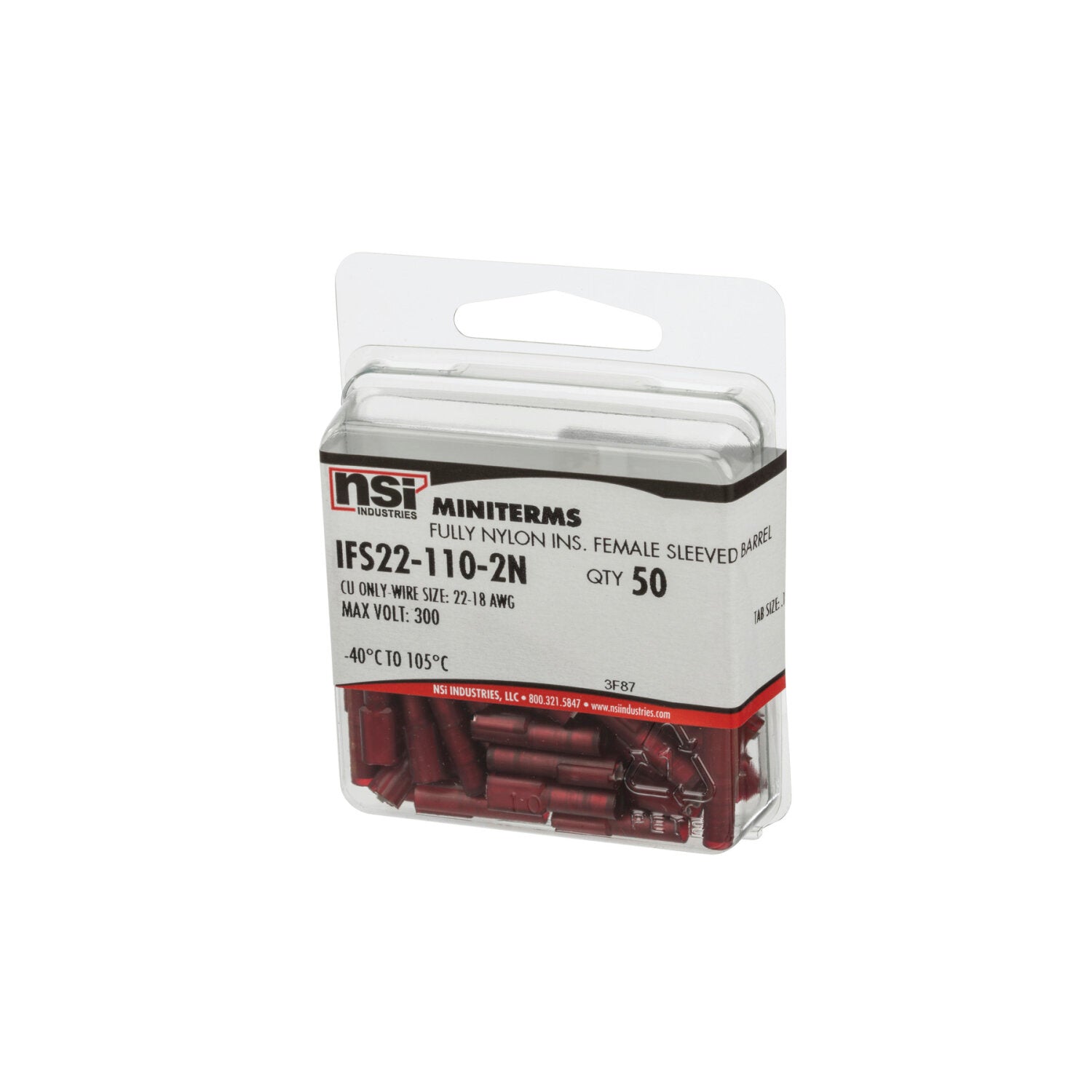 NSI IFS22-110-2N 22-18 Awg Nylon Fully Insulated Female Disconnects 50 Per Pack