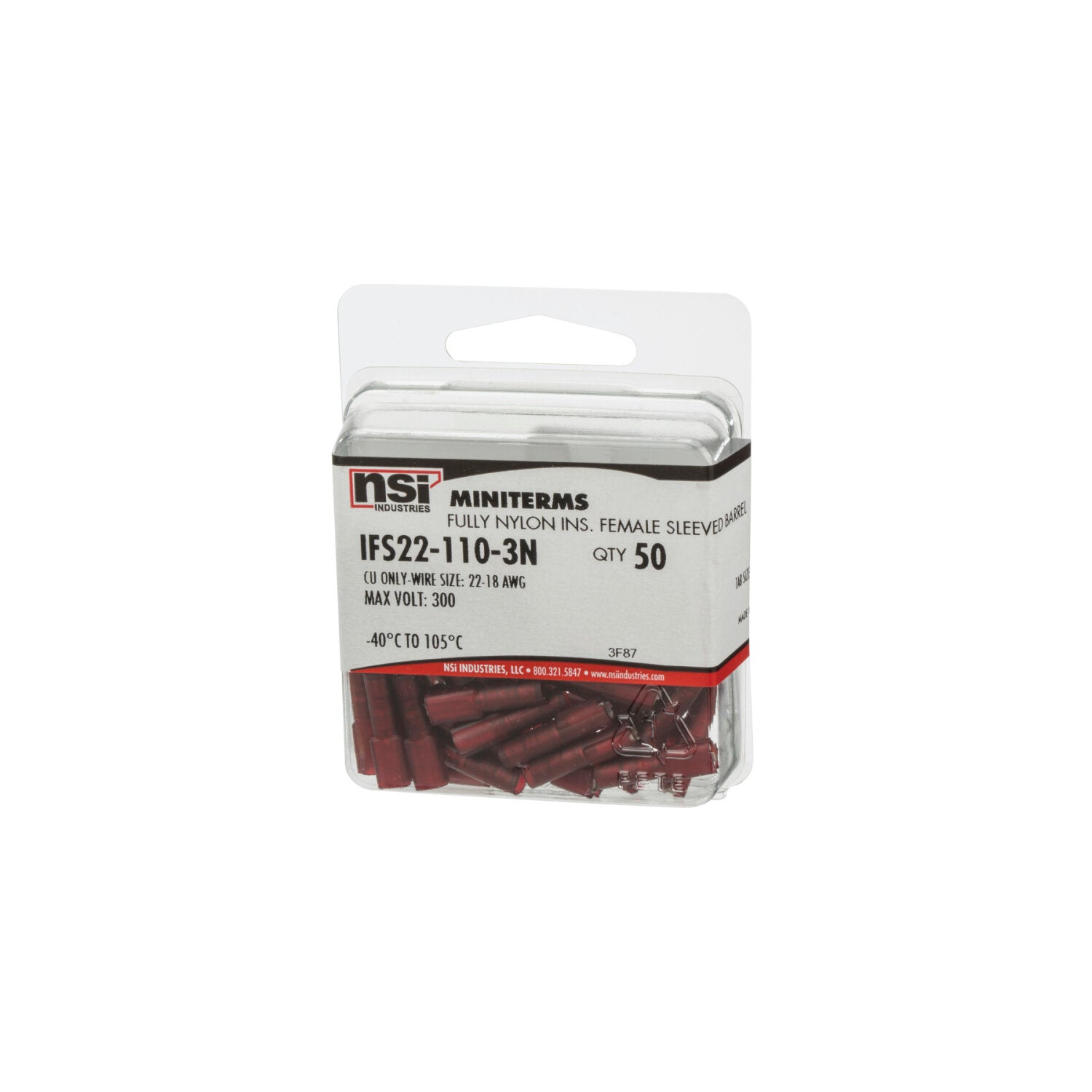NSI IFS22-110-3N 22-18 Awg Nylon Fully Insulated Female Disconnect 50 Piece