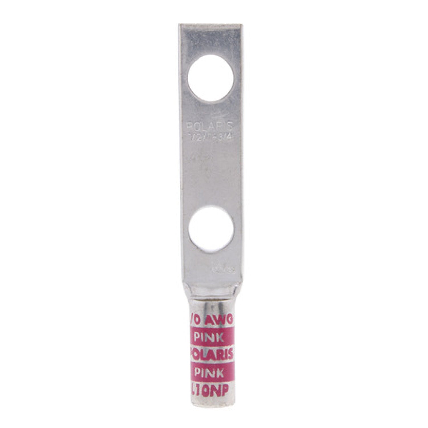 NSI L10NP Copper Long Lug with Peep Hole – Pink 2-Hole 1/0 AWG 1/2 Inch