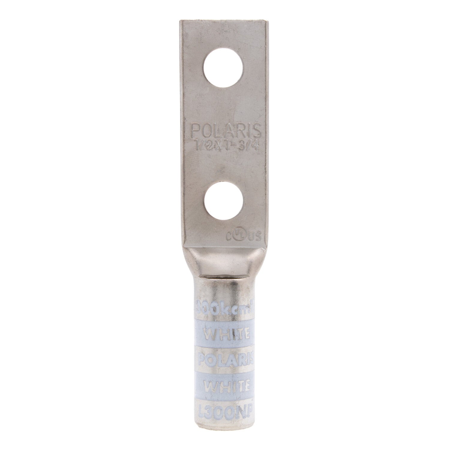 NSI L300NP 300 MCM 1/2” 2-Hole Copper Long Lug with Peep Hole – White