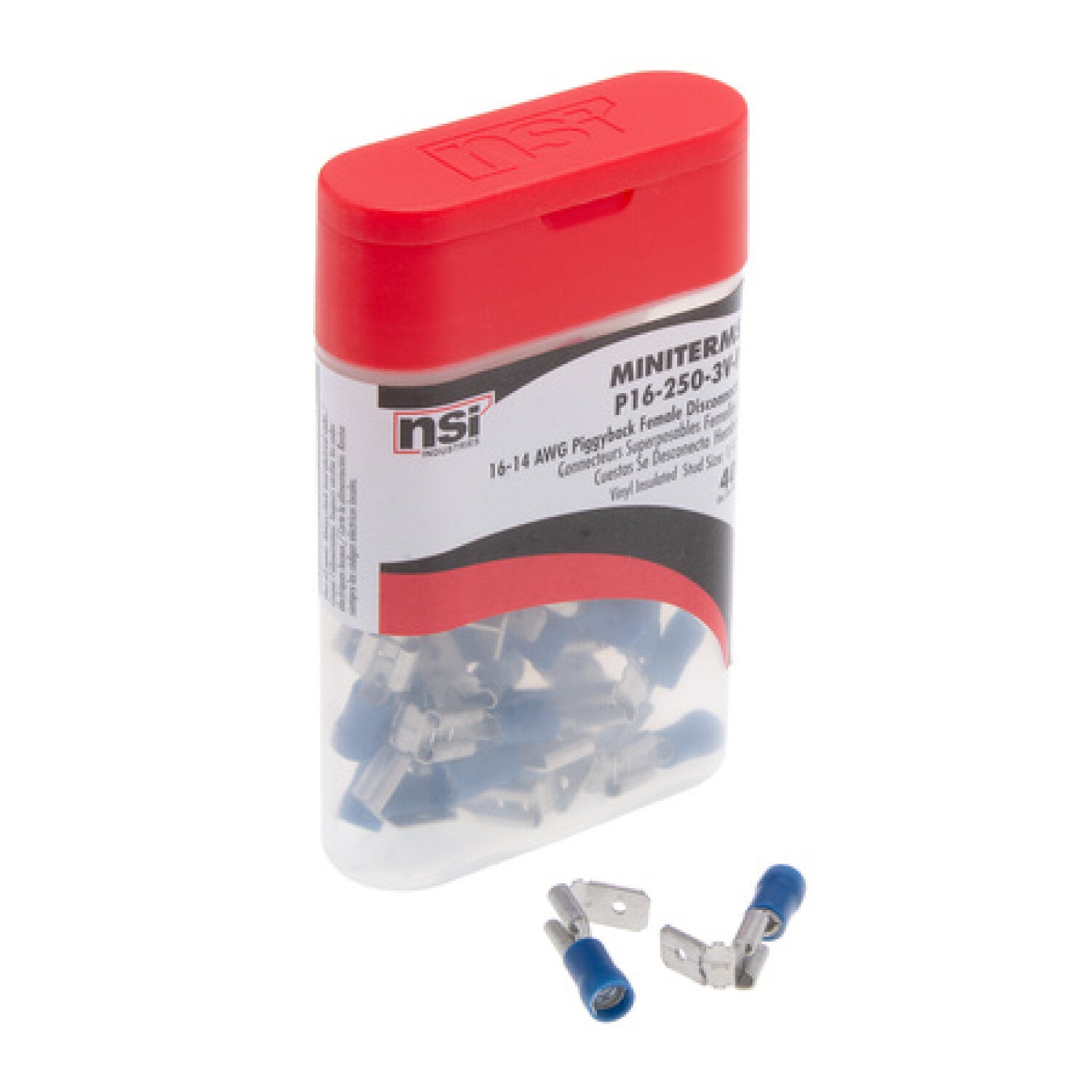 NSI P16-250-3V-P Wire Terminal Male-Female Piggyback Vinyl Awg .250 X .032 Pro Pack Bottle 40 Pack